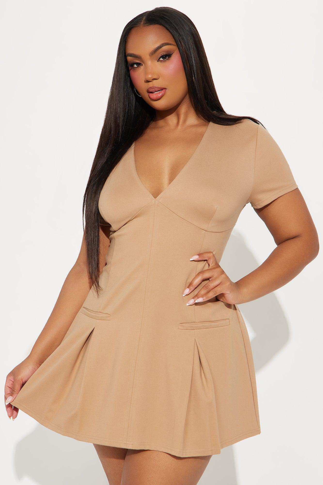 Melanie Pleated Micro Mini Dress - Taupe Product Image