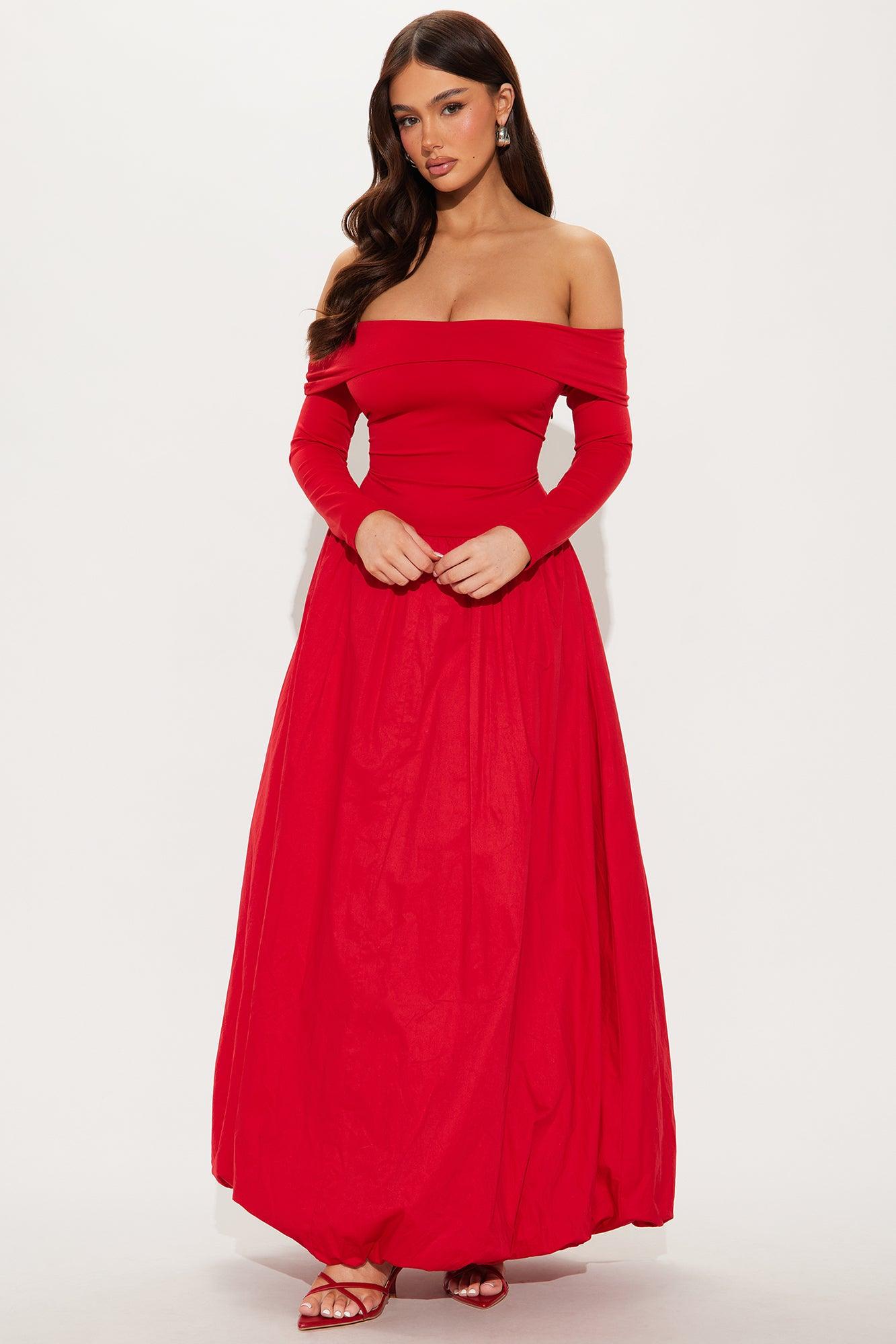 Melanie Poplin Maxi Dress - Red