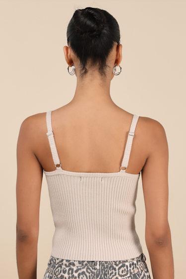 Melika Beige Ribbed Knotted Crop Tank Top Product Image