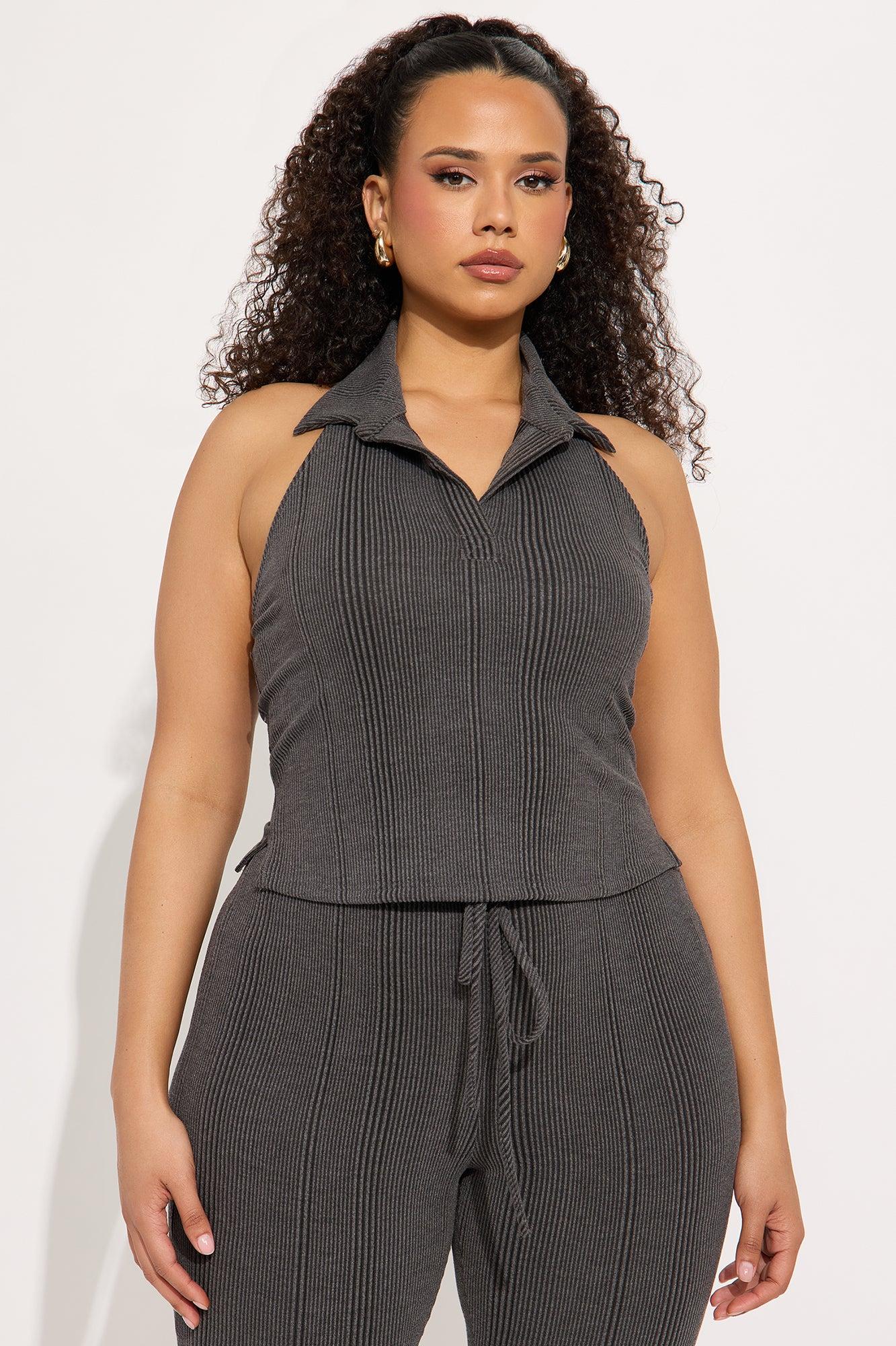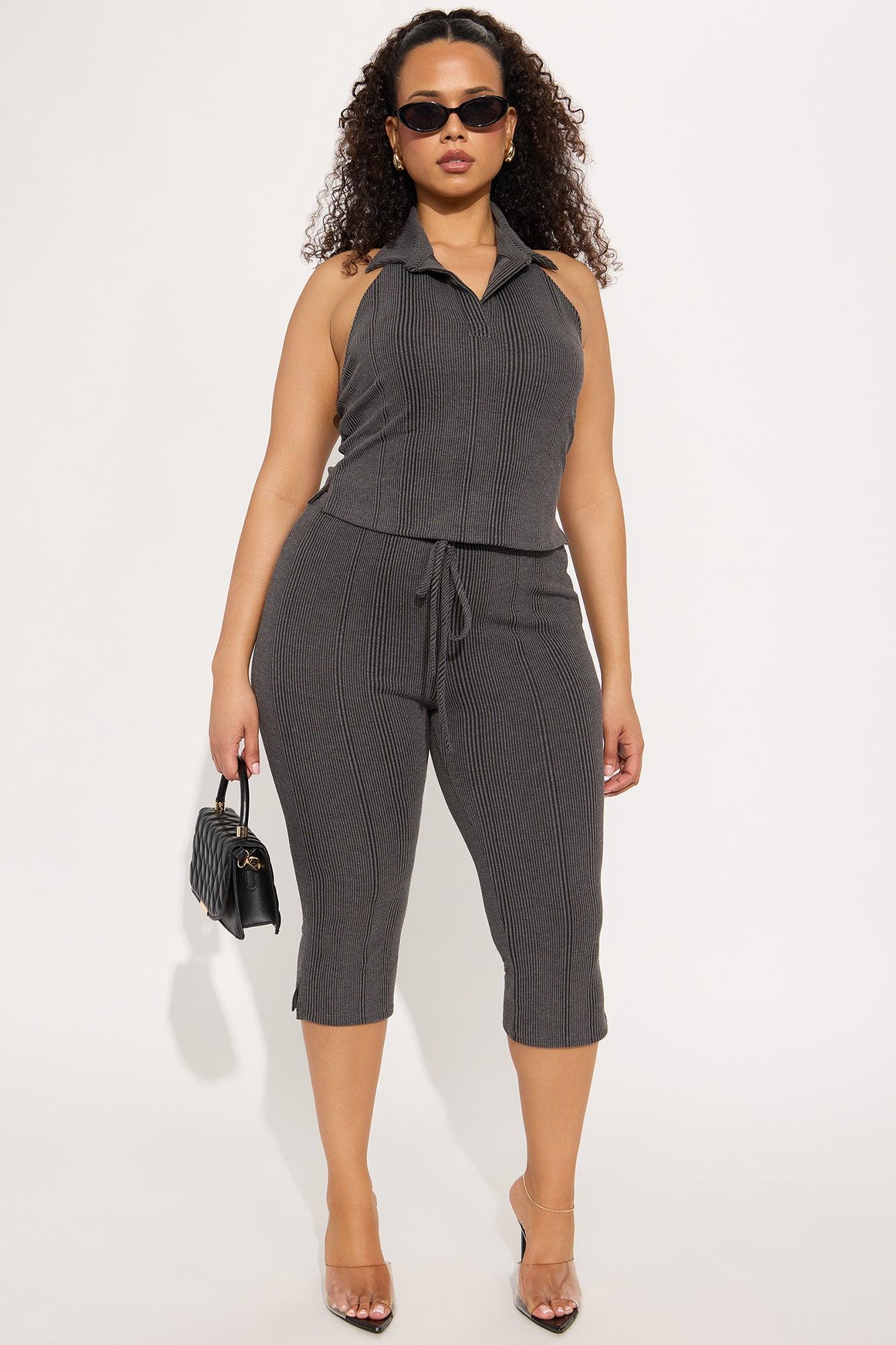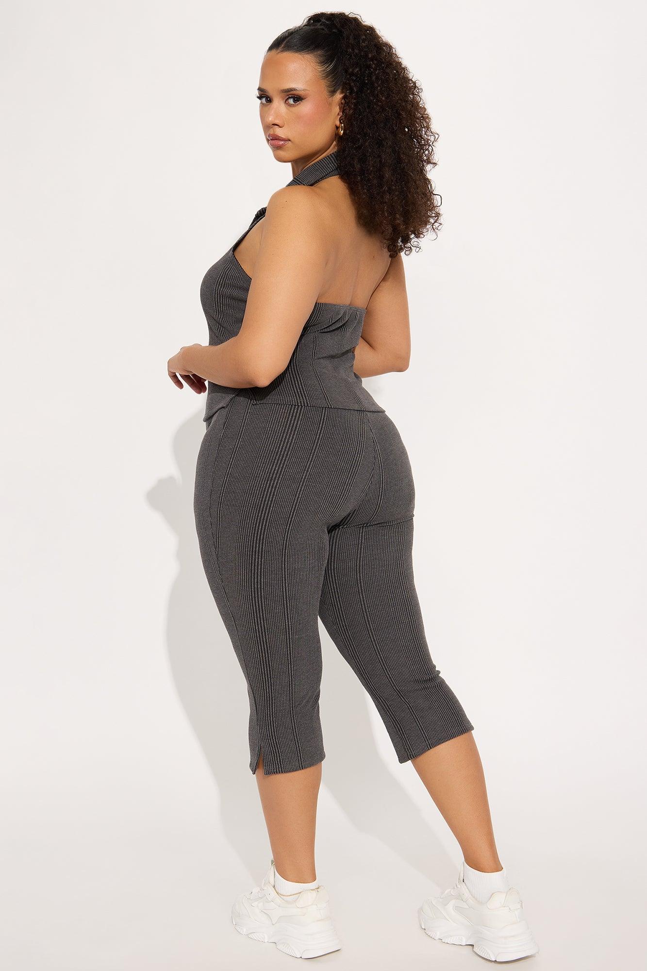 Melina Ribbed Capri Pant Set - Charcoal