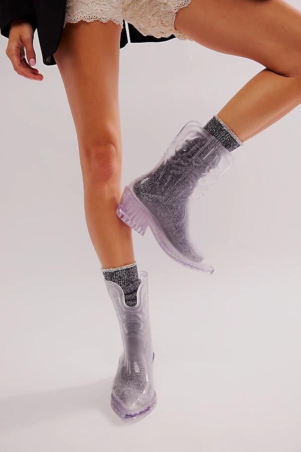 Lets take a trip down south. In the new Melissa Texas, the traditional cowboy style boot meets true Melissa fashion with a polished finish, cushion insole, and intricate details that are sure to make a statement. What are you waiting for? Giddy up. Vegan Certified. 100% Recyclable. Water Resistant. Signature Melissa Tutti Frutti Scent. Content + Care -100% PVC Hand wash with warm water and mild soap. Air dry away from the sun. Made in Brazil Size + Fit True to Size Melissa Texas Jelly Cowboy Bo