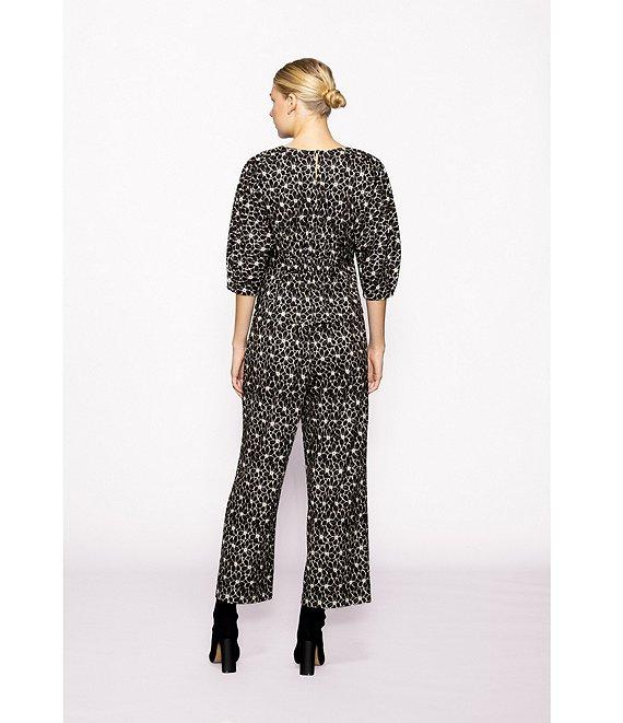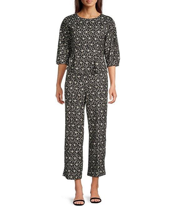MELLODAY Coordinating Floral Print Knit Techno Crepe Pintuck Wide Leg Pants