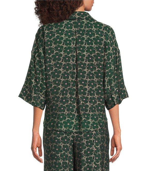 From MELLODAY, this blouse features: Tencel organza fabrication Floral Collared V-neckline 3/4 wide sleeves Drop shoulder Lined Button front closure Approx. 23.5" length Tencel/polyester; lining: polyester Hand wash cold/hang to dry Imported.