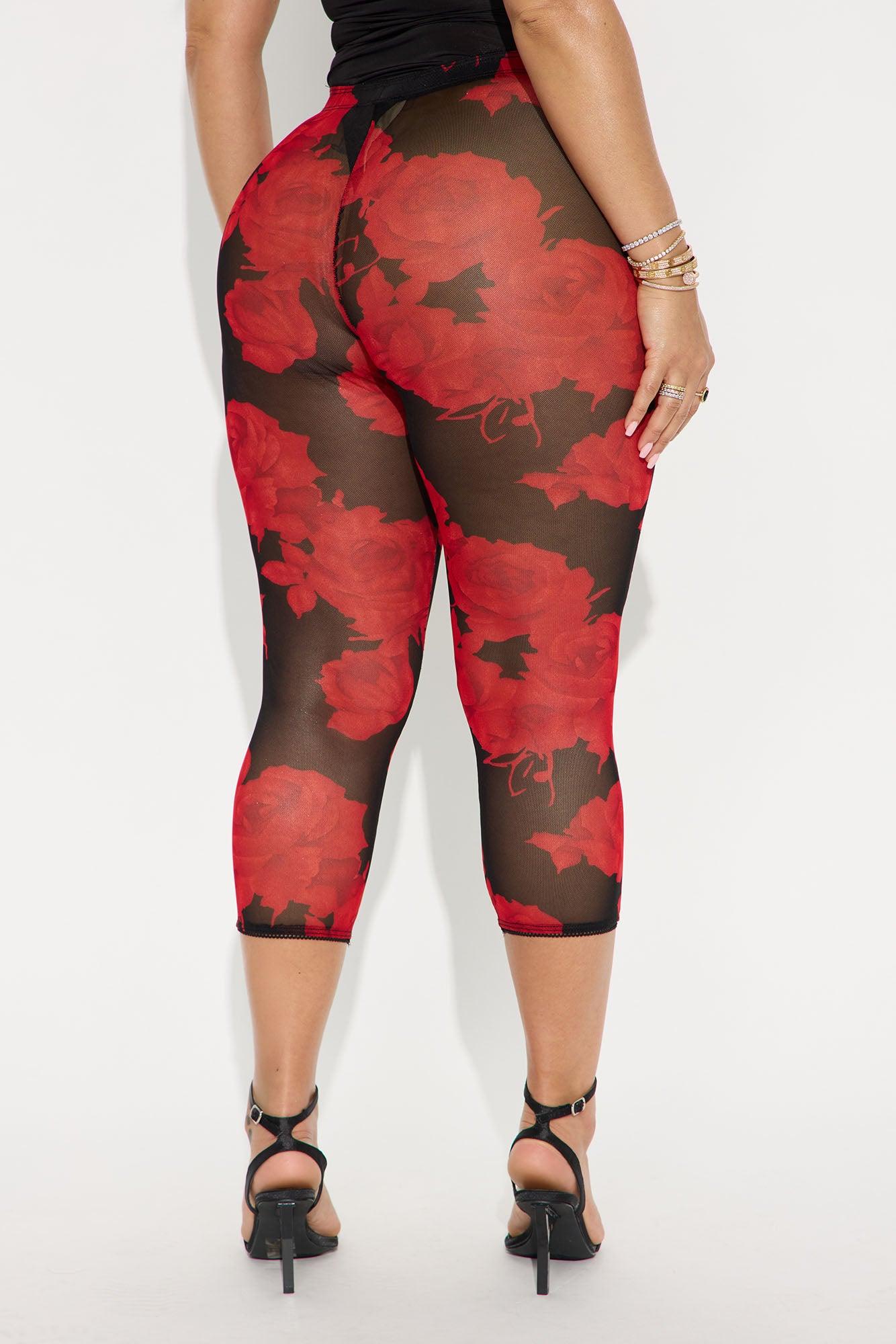 Available In Red/combo. Mesh Capri Legging High Rise Lace Trim Stretch 21" Inseam Self:92%Polyester 8%Spandex Imported California Proposition 65 WARNING: Cancer and Reproductive Harm - www.P65Warnings.ca.gov.