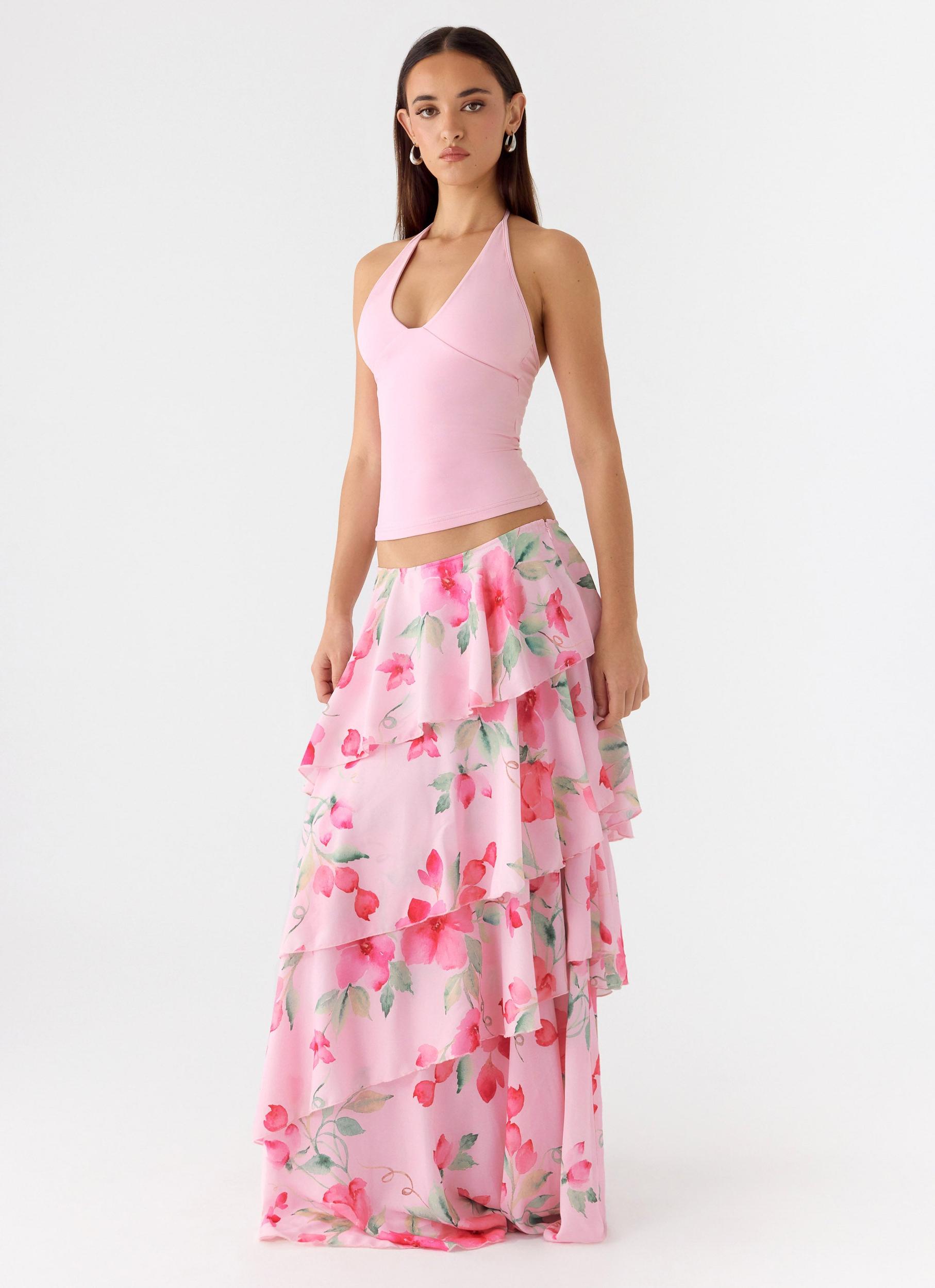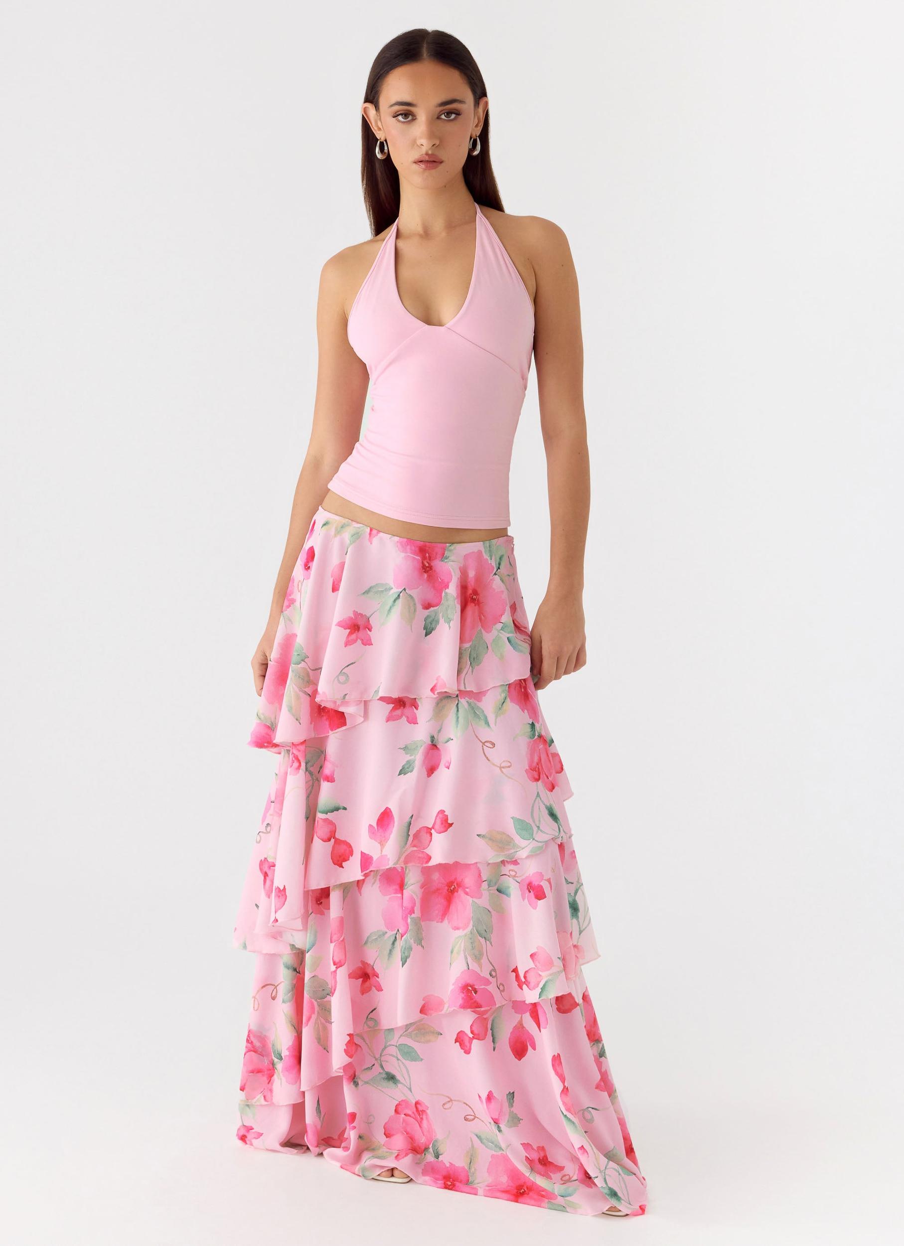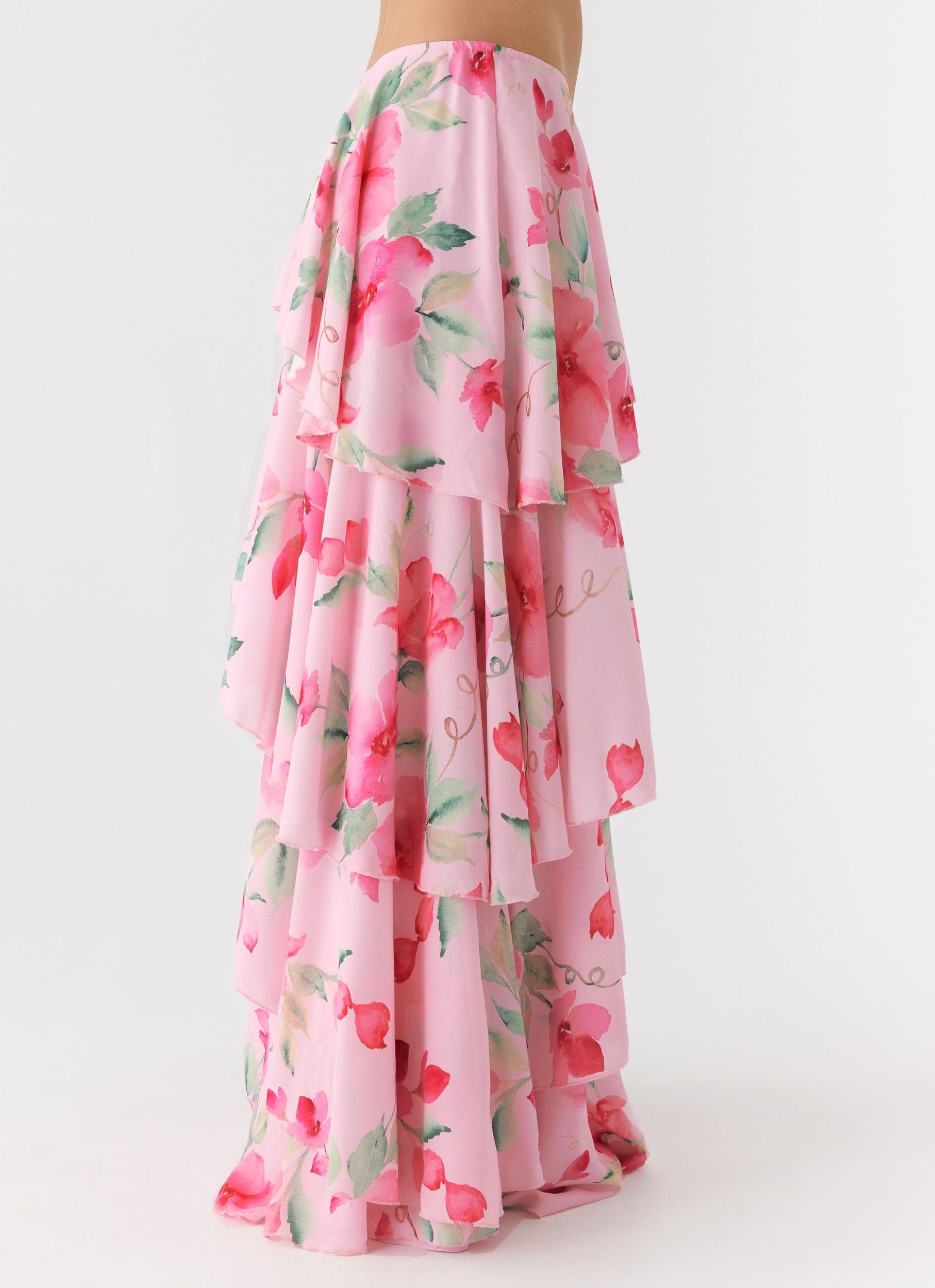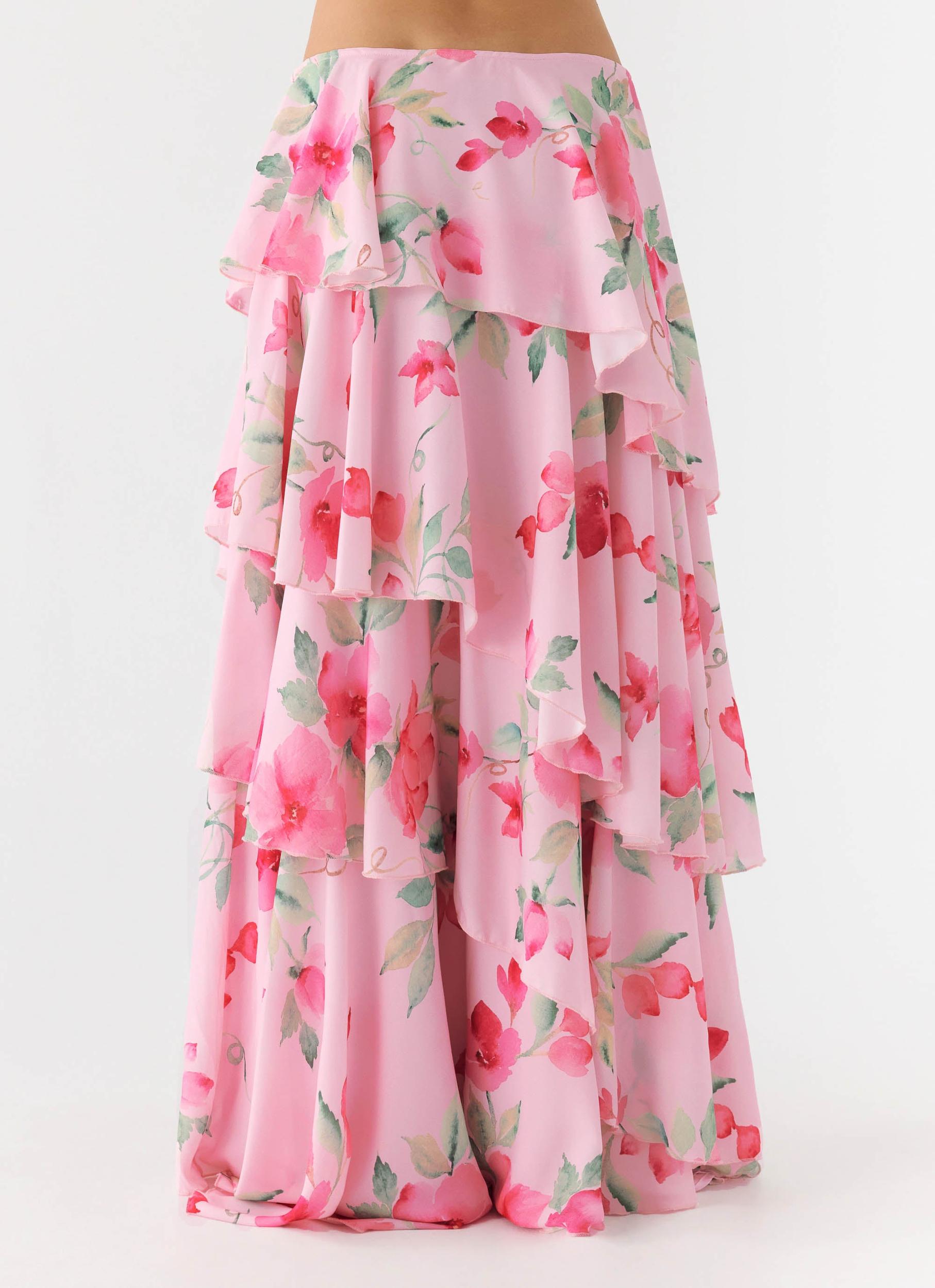 Peppermayo Exclusive The Melody Remedy Tiered Maxi Skirt is designed for sun-faded afternoons that drift into balmy nights. Sitting low on the waist, this flowing silhouette features soft tiered ruffles and a sweeping maxi length that moves effortlessly with every step. It’s an easy statement made for golden hour escapes and after-dark plans. - Low rise- Tiered ruffles- Maxi length- Elasticated waistband- Fabric: Main: 100% Polyester, Lining: 100% Polyester Size AU 8 / US 4 garment measurements: Waist: 79 cm / 31.10 inHip: 98 cm / 38.58 inLength: 105 cm / 41.34 inHem: 228 cm / 89.76 in Roberta is 177cm and wears size AU 6 / size US 2