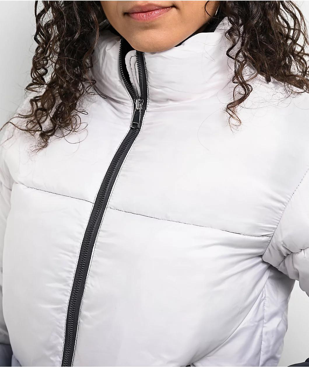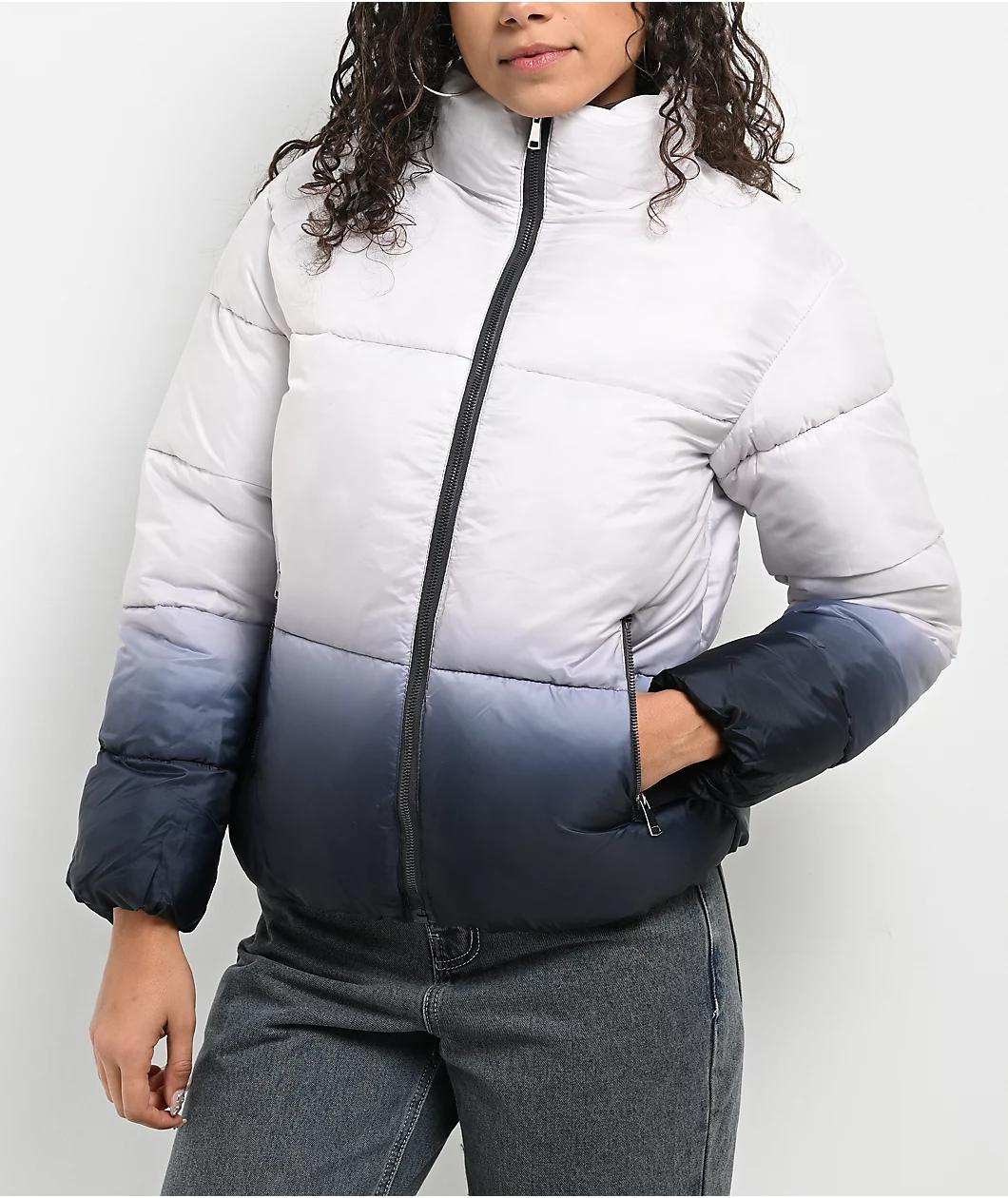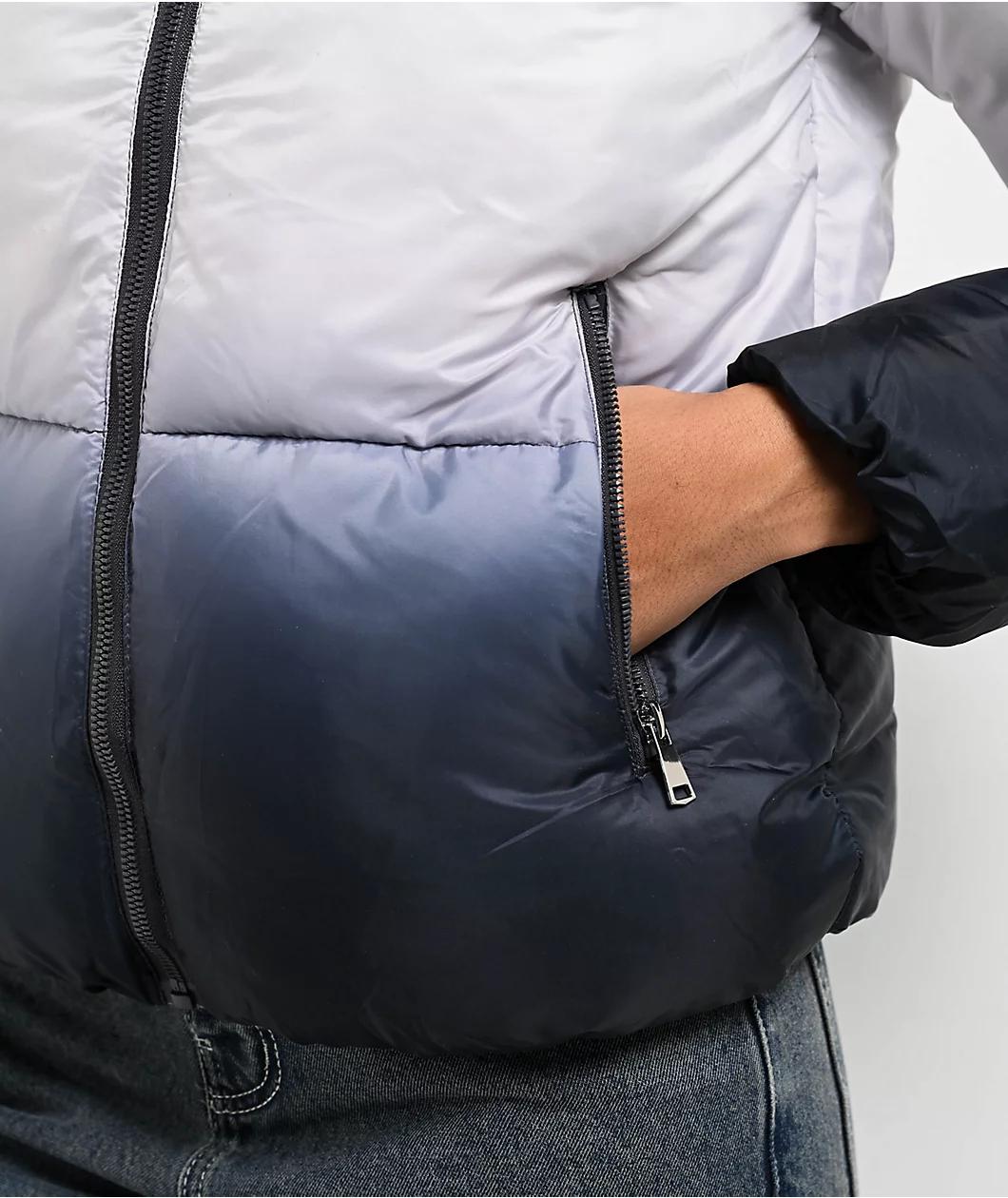 Elevate your winter wardrobe with the Ombre puffer jacket from Members Only in a white-to-black colorway. Made to withstand cold windy conditions, this puffer has a mock neck collar with a full zip closure, providing a warm cozy fit. Constructed with