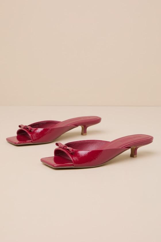 The Steve Madden Meme Burgundy Patent Leather Kitten Heel Slide Sandals are all you need to make some of the cutest outfits ever! Shiny, genuine patent leather shapes these super darling sandals that feature a trendy square footbed and a tapered toe strap adorned with a chic bow detail. A dainty kitten heel completes the sleek slide-on design!