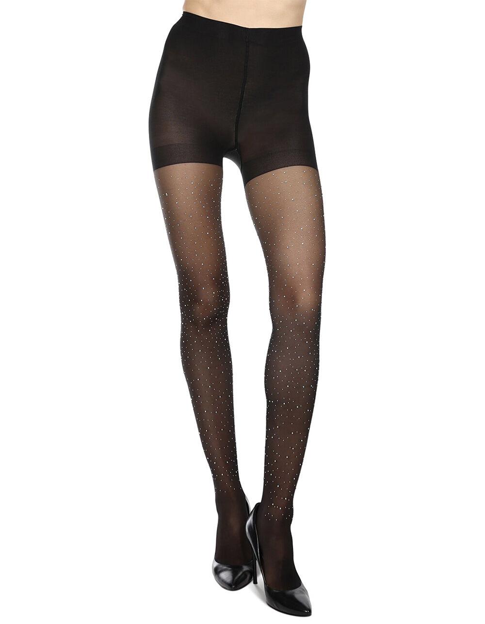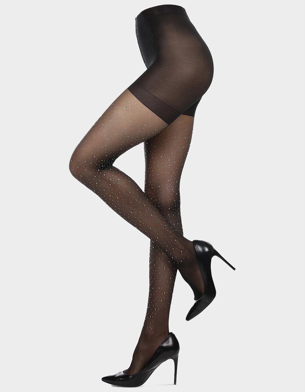 MEMOI All Over Rhinestone Womens Nylon Sheer Tights - BLACK