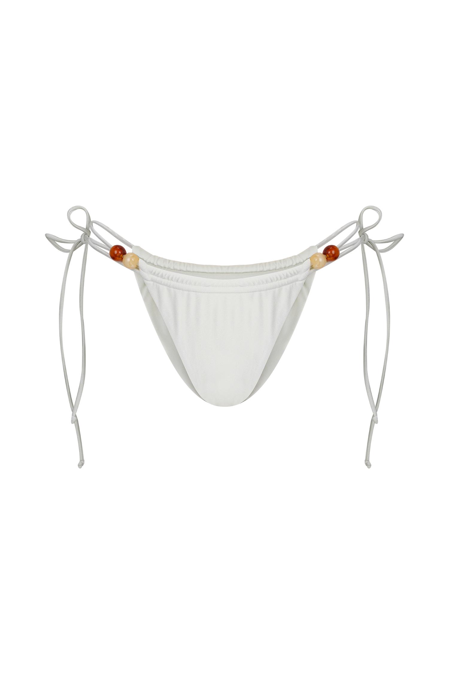 Tied in shimmer, styled for sun. The MEMPHIS Beaded Bikini Bottom is a playful yet polished take on a swimwear classic. Designed with adjustable side ties and gathered panels, it offers customizable coverage and a flattering fit. Delicate beading details at the ties add a touch of texture and shine, while the fully lined design ensures all-day comfort. Pair with the Memphis Beaded Bikini Top for a coordinated look that’s perfect for sun-soaked escapes and poolside lounging.