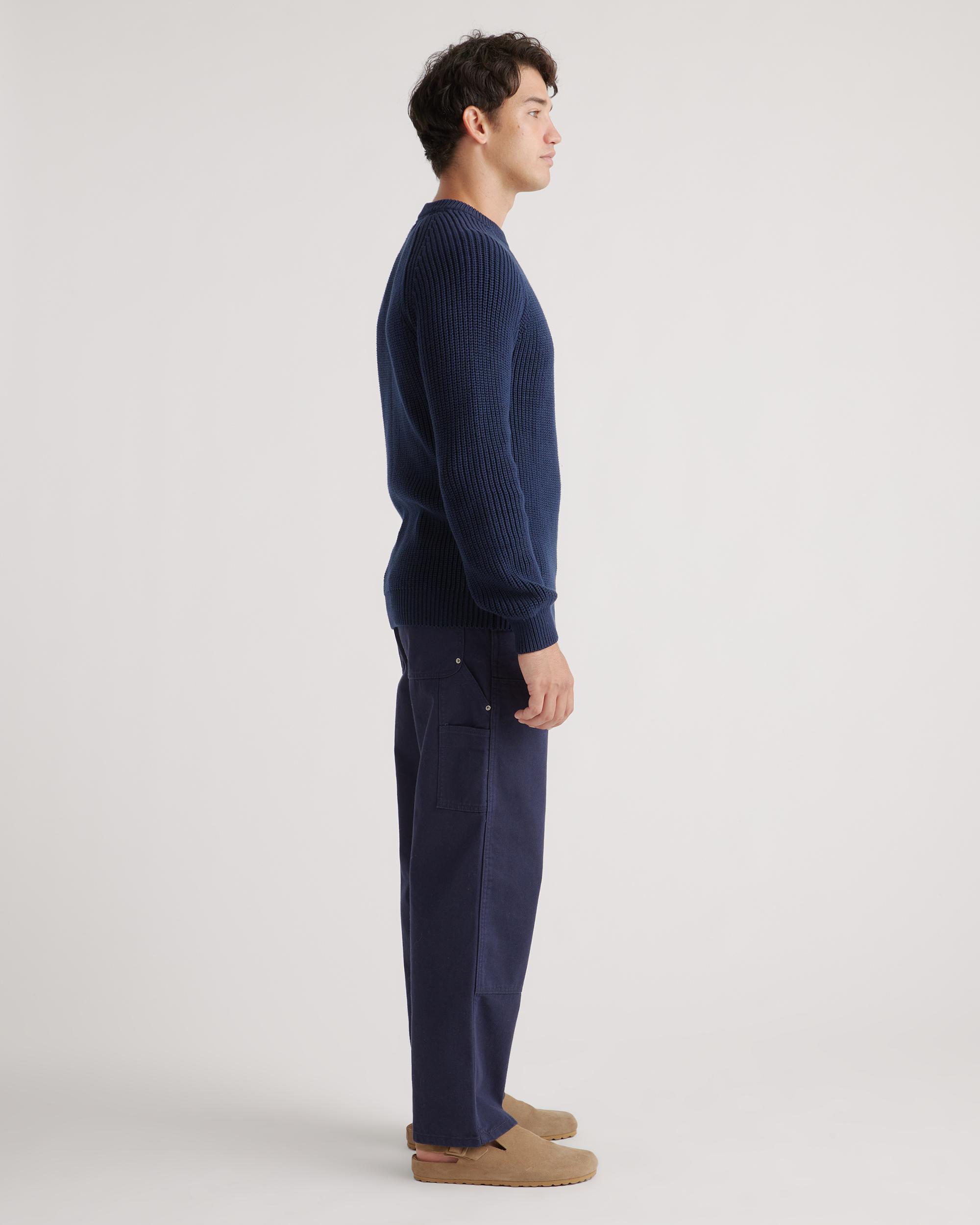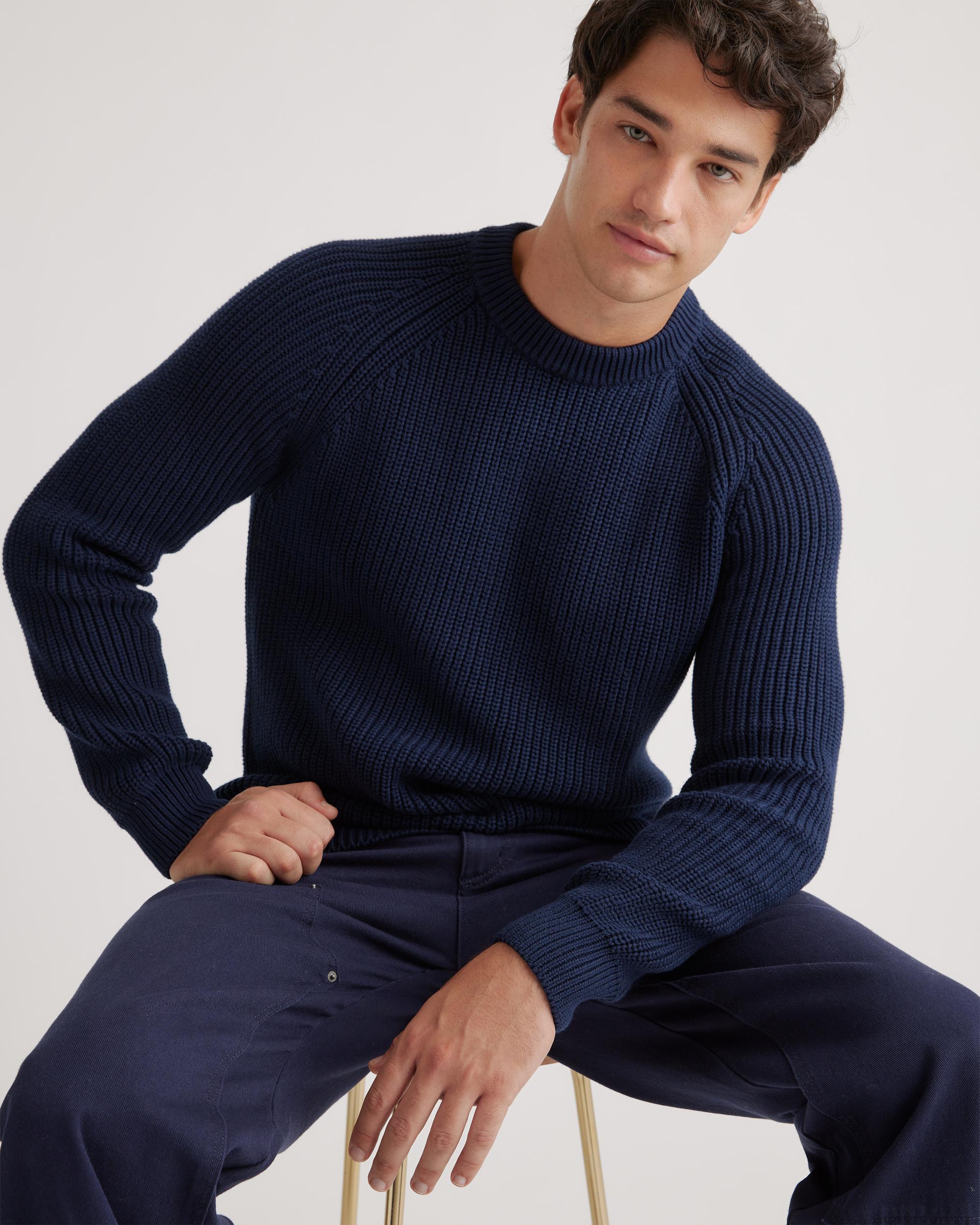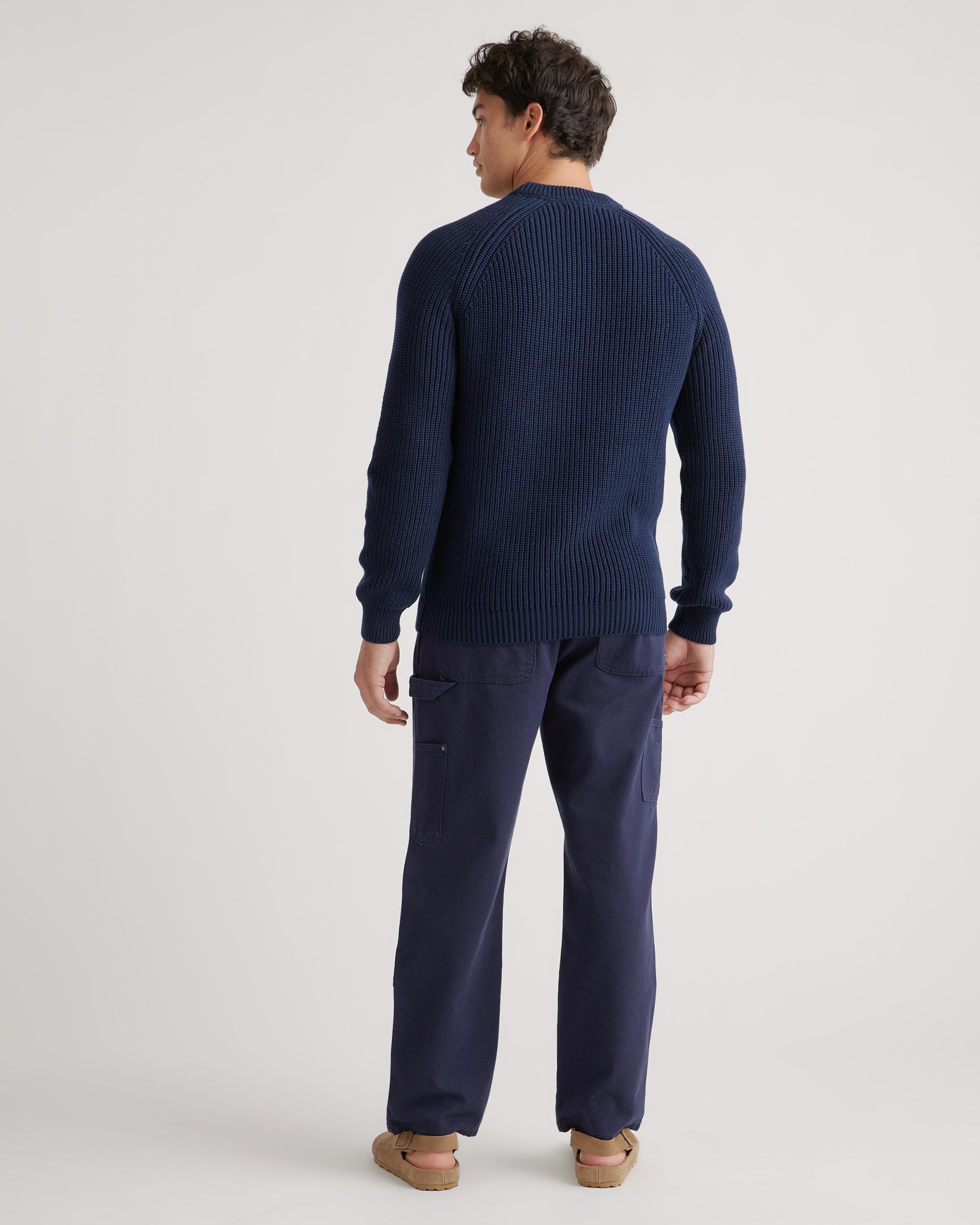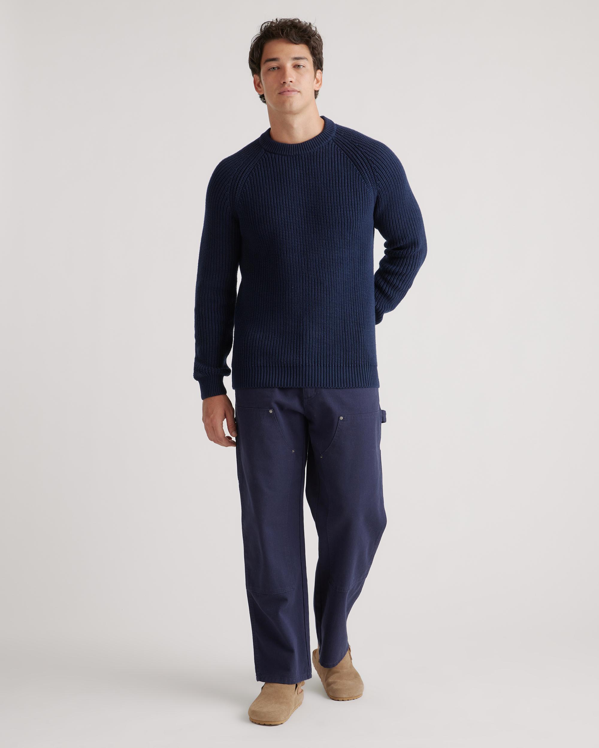 Casual, coastal cool: our 100% Organic Cotton Fisherman Crew Sweater is your latest wardrobe essential. This must-have sweater combines effortless style with low-key comfort. Made of 100% organic cotton, it's soft on your skin and timeless by design. Pair it with jeans for an everyday casual look or wear it to work with a more tailored trouser. | Quince | Men's Fisherman Crew Sweater in Navy, Organic Cotton, Size Small, Organic Cotton (sweaters)