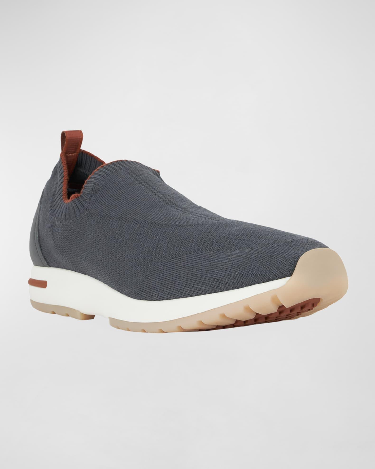 Loro Piana sneaker in double-layer knitted Wish%26#174; wool crafted with a very exclusive construction technique. Ultra-light and supremely comfortable. Sock-like collar forms to foot. Reinforced round toe. Tonal calfskin backstay. Pull-tab at back collar. Rubber sole with repeated brand initials. Made in Italy.
