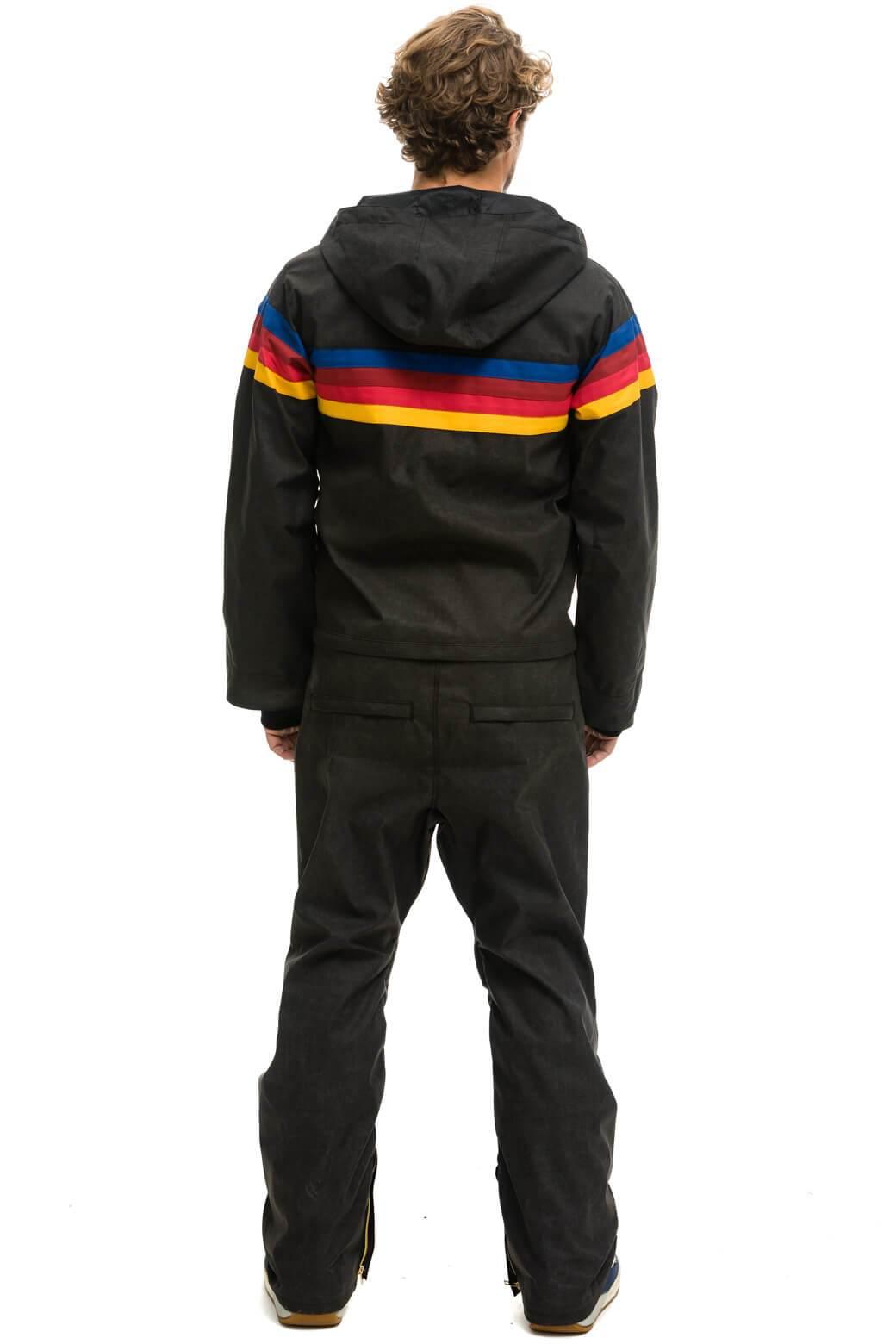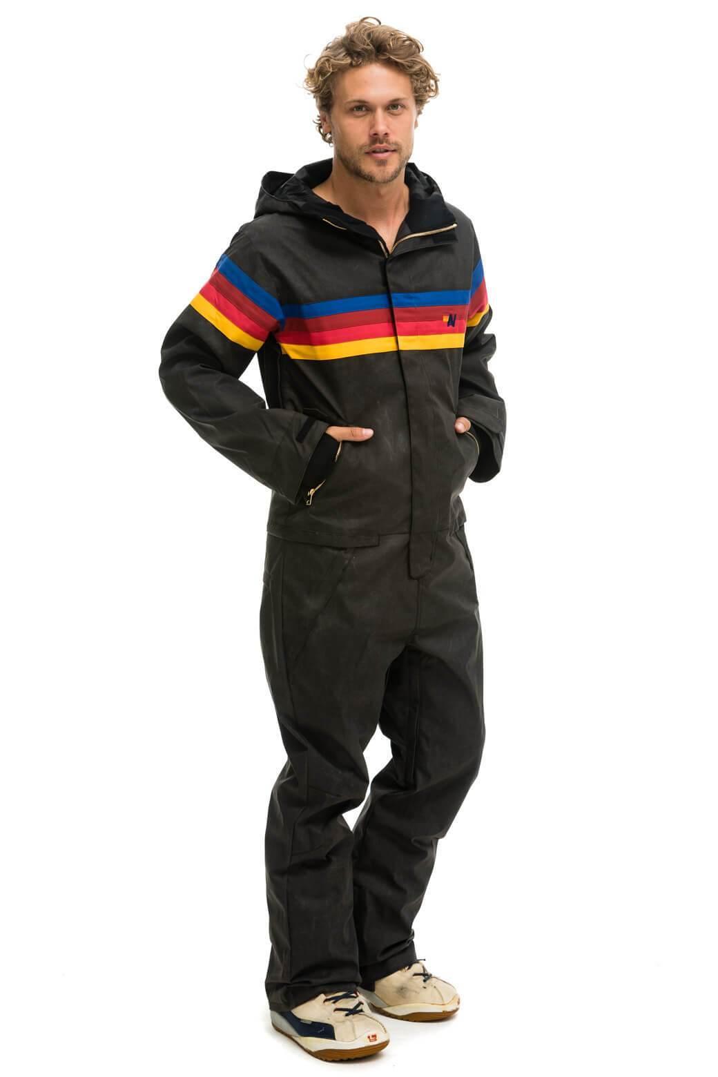 When we're not praying for snow...we're playing in it. Introducing our new line of powder suits that are insanely rad. You'll be turning heads all over the mountain. Shredding will never be the same. These suits are highly breathable, waterproof, and quick drying with critically-taped seams to lock out wetness for added protection in those needed zones. Our ultra soft nylon lining with DWR coating provides consistent moisture protection without adding bulk or added heat and added wrist gators to help keep the snow out and the warmth in. Featuring two sets of zippered hand-warmer pockets for all your on the mountain needs, back zip pockets, zippered media and mesh goggles pocket. We added a non-exposed around the waist zipper allows for a “drop open seat” for easy restroom access in addition to mesh-lined, no-snag Pit Zip and thigh vents. The contour hood is helmet compatible and features front and rear adjustment. Zipper Boot Gussets that allow a relax fit over any boot’s needs and water-resistant boot gaiter with silicone grip elastic to grab your boots and stay put while riding hard. Handmade in LA with imported materials