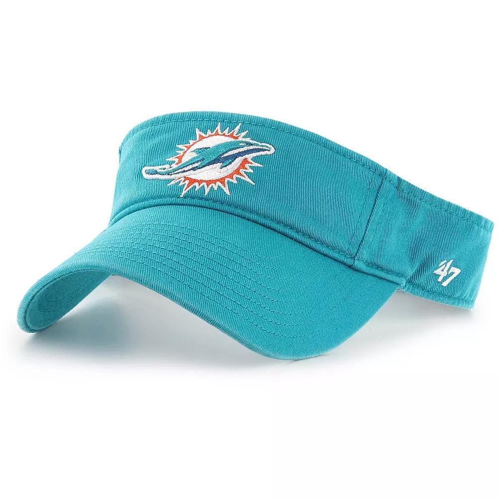 Prevent the glaring sun from blocking your view at the Miami Dolphins game with this Clean Up visor from 47. It has a lighter feel and features a nicely embroidered Miami Dolphins logo. Youll look like a dedicated fan whos ready to coach the team to a victory.Prevent the glaring sun from blocking your view at the Miami Dolphins game with this Clean Up visor from 47. It has a lighter feel and features a nicely embroidered Miami Dolphins logo. Youll look like a dedicated fan whos ready to coach the team to a victory.PRODUCT FEATURESMaterial: 100% CottonCurved billAdjustable hook and loop fastener strapWoven clip tagOne size fits mostEmbroidered graphics with raised detailsSurface washableOfficially licensedImportedBrand: 47 Size: One Size. Color: Turq A. Gender: male. Age Group: adult.