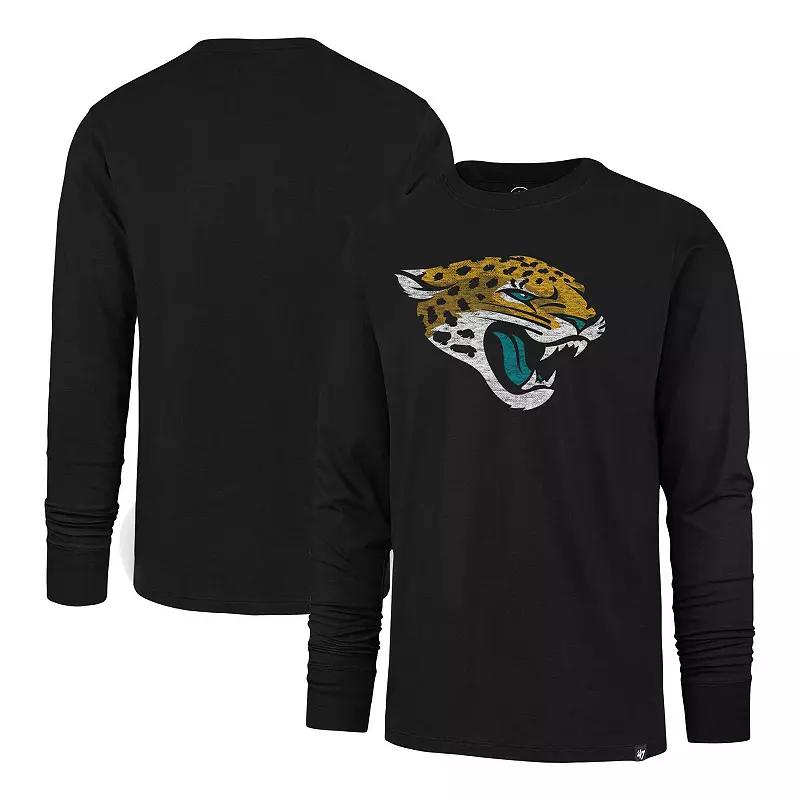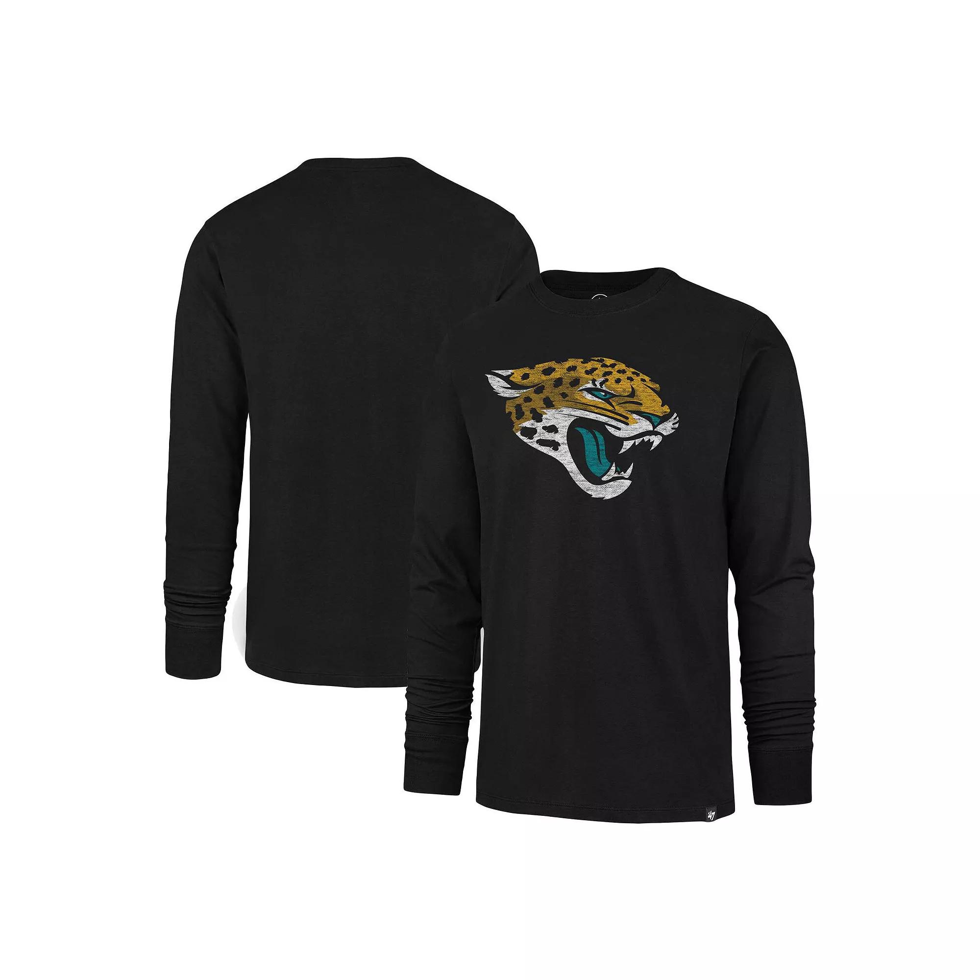 Add a vintage piece to your Jacksonville Jaguars collection by grabbing this 47 Premier Franklin T-shirt. A crew neck design and comfortable material promote a casual feel. Distressed Jacksonville Jaguars graphics on the chest create a retro look.Add a vintage piece to your Jacksonville Jaguars collection by grabbing this 47 Premier Franklin T-shirt. A crew neck design and comfortable material promote a casual feel. Distressed Jacksonville Jaguars graphics on the chest create a retro look.PRODUCT FEATURESImportedOfficially licensedLong sleeveDistressed screen print graphicsMaterial: 100% CottonMachine wash, tumble dry lowBrand: 47Crew neck Color: Black. Gender: male. Age Group: adult.
