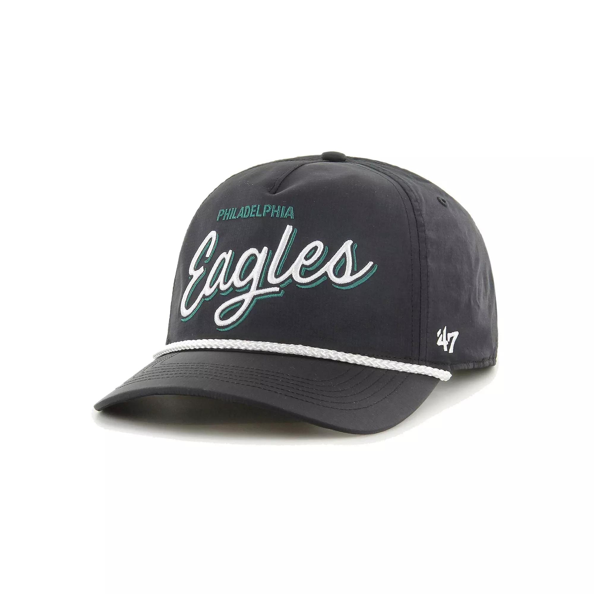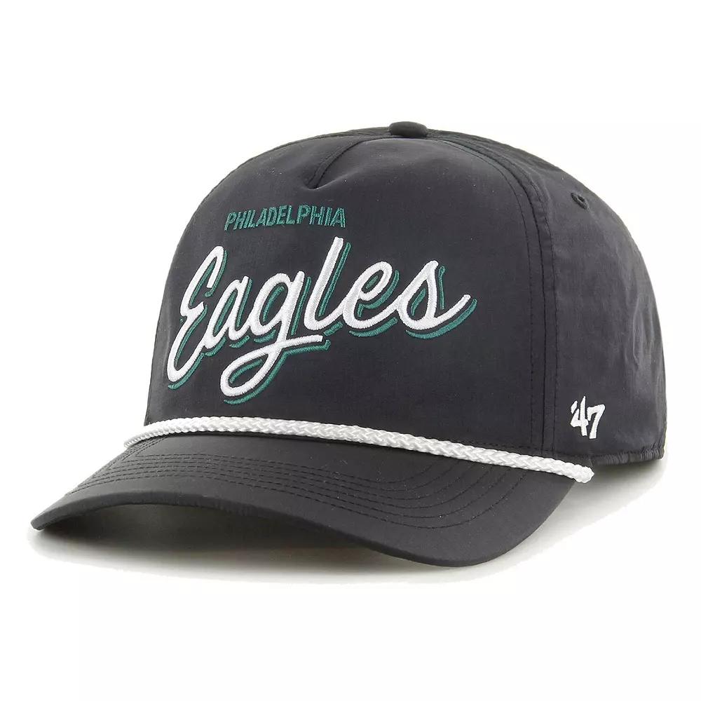 Leave no doubts about your collegiate loyalty when you wear this Philadelphia Eagles Fairway Hitch hat. Made by 47, it features the team name embroidered across the front and the Philadelphia Eagles logo on the back. A snap closure lets you quickly and easily adjust the fit, while brrr technology ensures a cool, comfortable feel.Leave no doubts about your collegiate loyalty when you wear this Philadelphia Eagles Fairway Hitch hat. Made by 47, it features the team name embroidered across the front and the Philadelphia Eagles logo on the back. A snap closure lets you quickly and easily adjust the fit, while brrr technology ensures a cool, comfortable feel.PRODUCT FEATURESOfficially licensedUnstructured relaxed fitMid CrownSnap ClosureCurved billContrast-color undervisorMaterial: 100% NylonOne size fits mostEmbroidered graphicsbrrr technology utilizes three key features (cooling minerals, active wicking, rapid drying) to multiply the cooling effectWipe clean with a damp clothBrand: 47Five panels with mid and rear eyeletsWoven fabric appliqueImportedDecorative rope design on visor Size: One Size. Color: Black. Gender: male. Age Group: adult.
