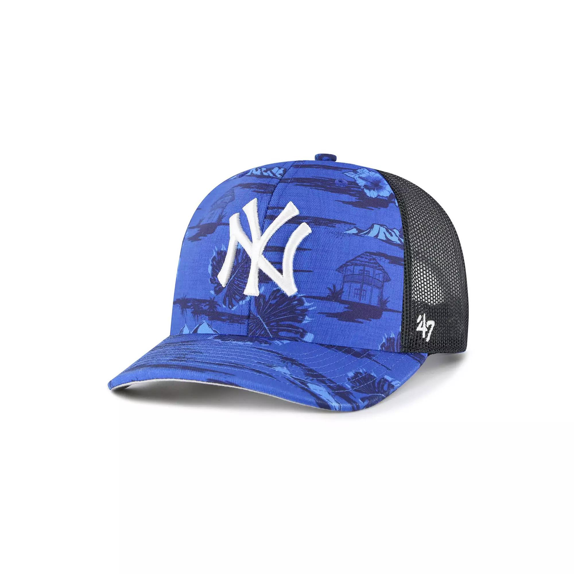 This 47 Fiji Trucker Adjustable Hat is a perfect addition to your New York Yankees gameday outfit. This 47 trucker hat features an eye-catching sublimated pattern across the front panels, adding a touch of tropical flair to your game-day look. With two solid front panels and four mesh mid and rear panels, this New York Yankees hat provides a comfortable blend of structure and breathability.This 47 Fiji Trucker Adjustable Hat is a perfect addition to your New York Yankees gameday outfit. This 47 trucker hat features an eye-catching sublimated pattern across the front panels, adding a touch of tropical flair to your game-day look. With two solid front panels and four mesh mid and rear panels, this New York Yankees hat provides a comfortable blend of structure and breathability.PRODUCT FEATURESTwo front panels with eyeletsStructured fitWipe clean with a damp clothBrand: 47Material: 100% CottonFour mesh mid and rear panelsSnap ClosureImportedOfficially licensedSublimated tropical pattern across front panelsContrast-color undervisorMid CrownOne size fits mostCurved billEmbroidered team graphic with raised details across front panels Size: One Size. Color: Blue. Gender: male. Age Group: adult.