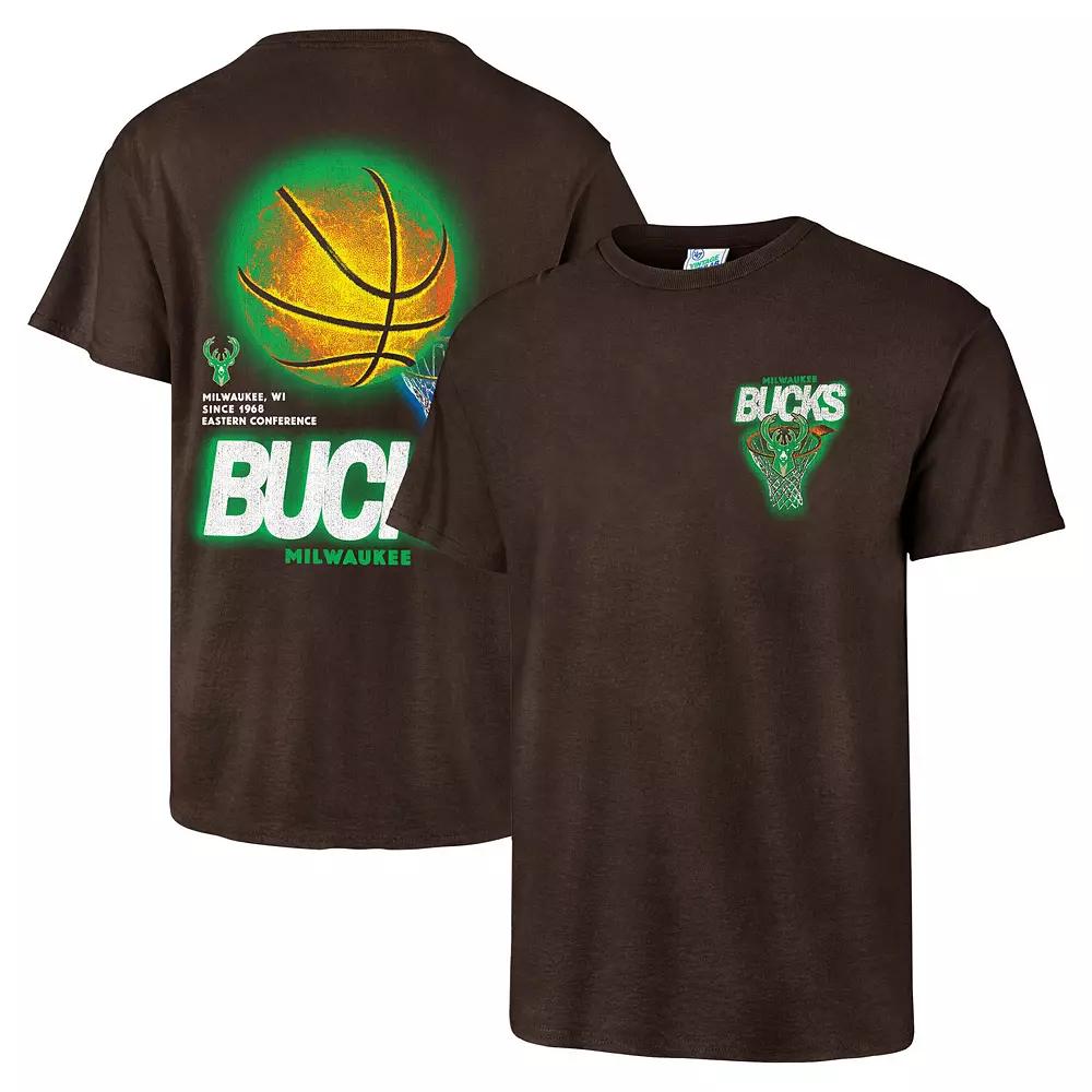 Represent your favorite NBA squad in style with this Milwaukee Bucks Tubular Dagger Tradition Premium T-Shit. Crafted by 47, it features distressed graphics on the front and back for a timeless, vintage look. High-quality cotton fabric and a crew neck cut complete the design, making this tee an essential piece of Milwaukee Bucks fan gear.Represent your favorite NBA squad in style with this Milwaukee Bucks Tubular Dagger Tradition Premium T-Shit. Crafted by 47, it features distressed graphics on the front and back for a timeless, vintage look. High-quality cotton fabric and a crew neck cut complete the design, making this tee an essential piece of Milwaukee Bucks fan gear.PRODUCT FEATURESMachine wash, tumble dry lowImportedMaterial: 100% CottonCrew neckOfficially licensedShort sleeveContrasting color stitchingDistressed screen print graphicsBrand: 47 Color: Brown. Gender: male. Age Group: adult.