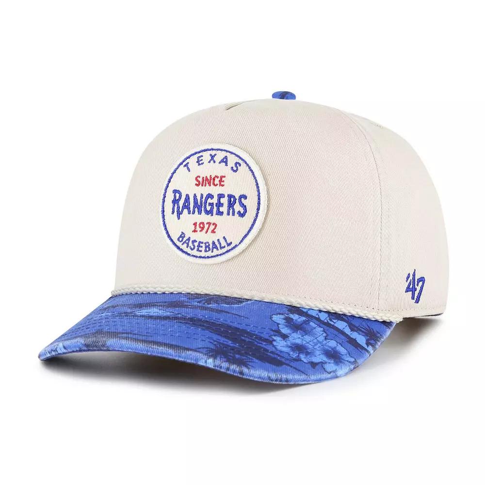Add some classic Texas Rangers style to your game day look with this 47 Fiji Rope Hitch Adjustable Hat. The 47 Hitch boasts a retro-inspired silhouette with a pinched five-panel crown and a braided rope cord, adding a touch of vintage flair to your game-day attire. Featuring an embroidered team fabric applique with the team name and founding year, this hat proudly showcases your Texas Rangers pride.Add some classic Texas Rangers style to your game day look with this 47 Fiji Rope Hitch Adjustable Hat. The 47 Hitch boasts a retro-inspired silhouette with a pinched five-panel crown and a braided rope cord, adding a touch of vintage flair to your game-day attire. Featuring an embroidered team fabric applique with the team name and founding year, this hat proudly showcases your Texas Rangers pride.PRODUCT FEATURESMid CrownMaterial: 100% CottonSnap ClosureMid and rear panels with eyeletsBrand: 47Wipe clean with a damp clothSublimated graphics on billThe 47 Hitch is a retro-inspired silhouette constructed with a pinched five-panel crown and a braided rope cordImportedOne size fits mostSlightly Curved BillEmbroidered team fabric applique includes team name and founding yearStructured fitSolid front panelOfficially licensed Size: One Size. Color: Beige. Gender: male. Age Group: adult.