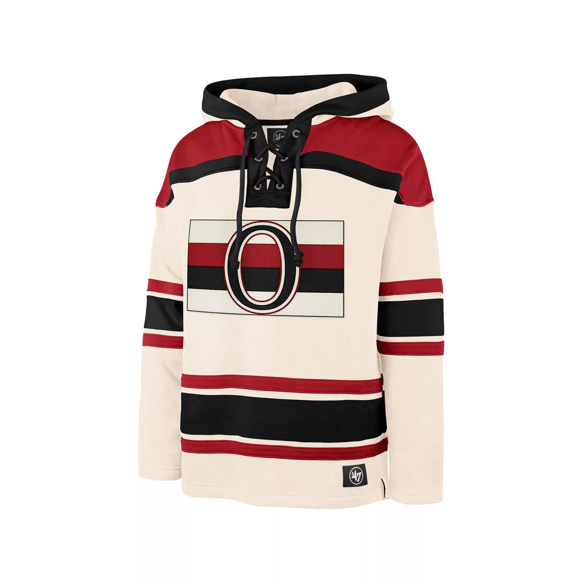 Searching for a way to highlight your unwavering Ottawa Senators pride when it gets cold outside? Look no further than this bold Superior Lacer pullover hoodie from 47. Featuring crisp Ottawa Senators graphics on the chest and shoulders and a unique lace-up front, this pullover will become a go-to for those super chilly days.Searching for a way to highlight your unwavering Ottawa Senators pride when it gets cold outside? Look no further than this bold Superior Lacer pullover hoodie from 47. Featuring crisp Ottawa Senators graphics on the chest and shoulders and a unique lace-up front, this pullover will become a go-to for those super chilly days.PRODUCT FEATURESEmbroidered LogoHoodedMachine wash, tumble dry lowFleece liningEmbroidered twill applique at center front and shouldersOfficially licensedMaterial: 80% Cotton/20% Polyester - Body; 50% Cotton/50% Polyester - Hood LiningLong sleevePulloverImportedRounded droptail hemBrand: 47Side splits at hemMidweight hoodie suitable for moderate temperaturesLace-up neckline with metal grommets Size: 2XL. Color: Sen Beige. Gender: male. Age Group: adult.