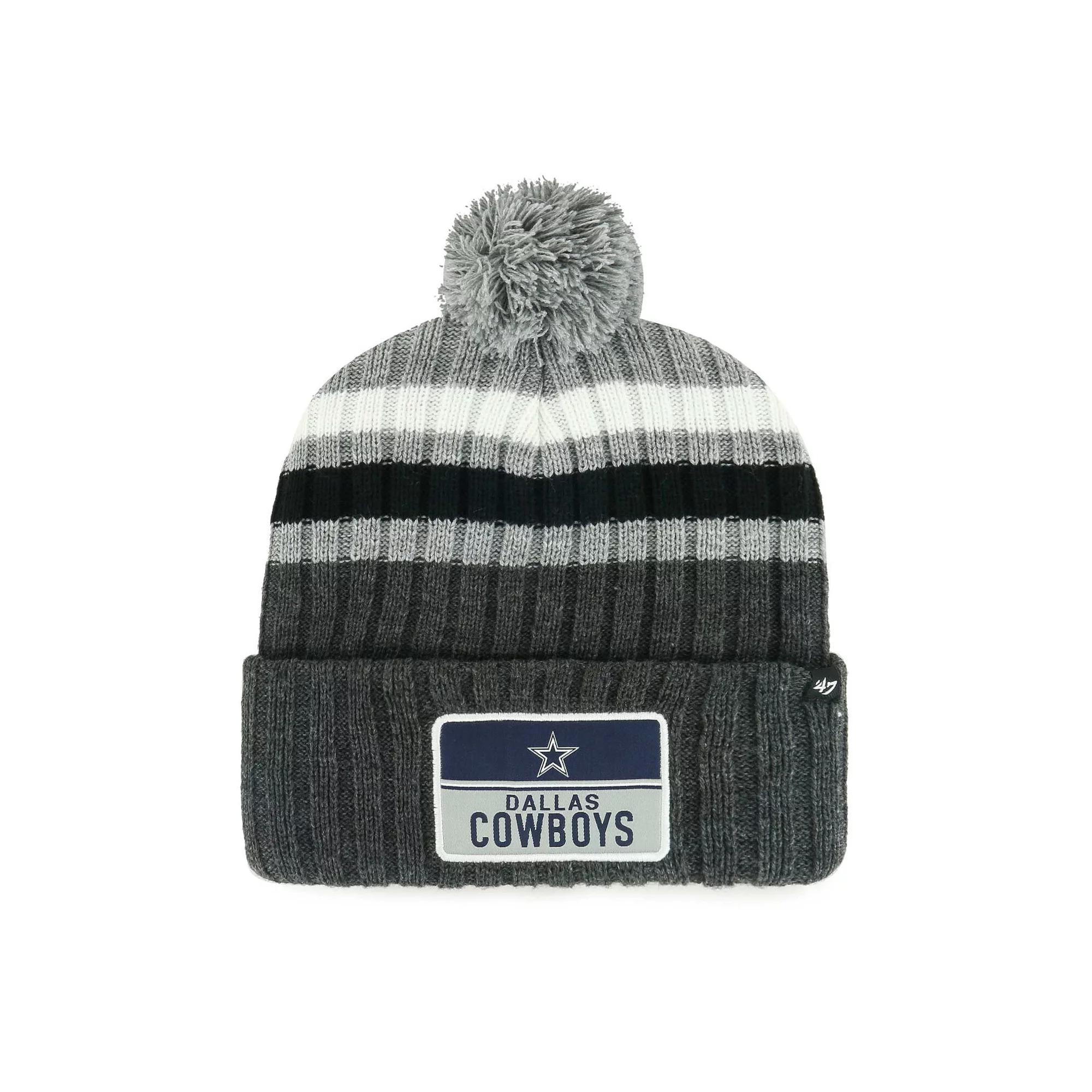 Make your Dallas Cowboys headwear easier to match with multiple outfits by grabbing this Stack cuffed knit hat from 47 Brand. The Dallas Cowboys applique stands out against the stripe pattern in neutral colors and matching pom. The stretch fit provides a snug feel and cozy warmth.