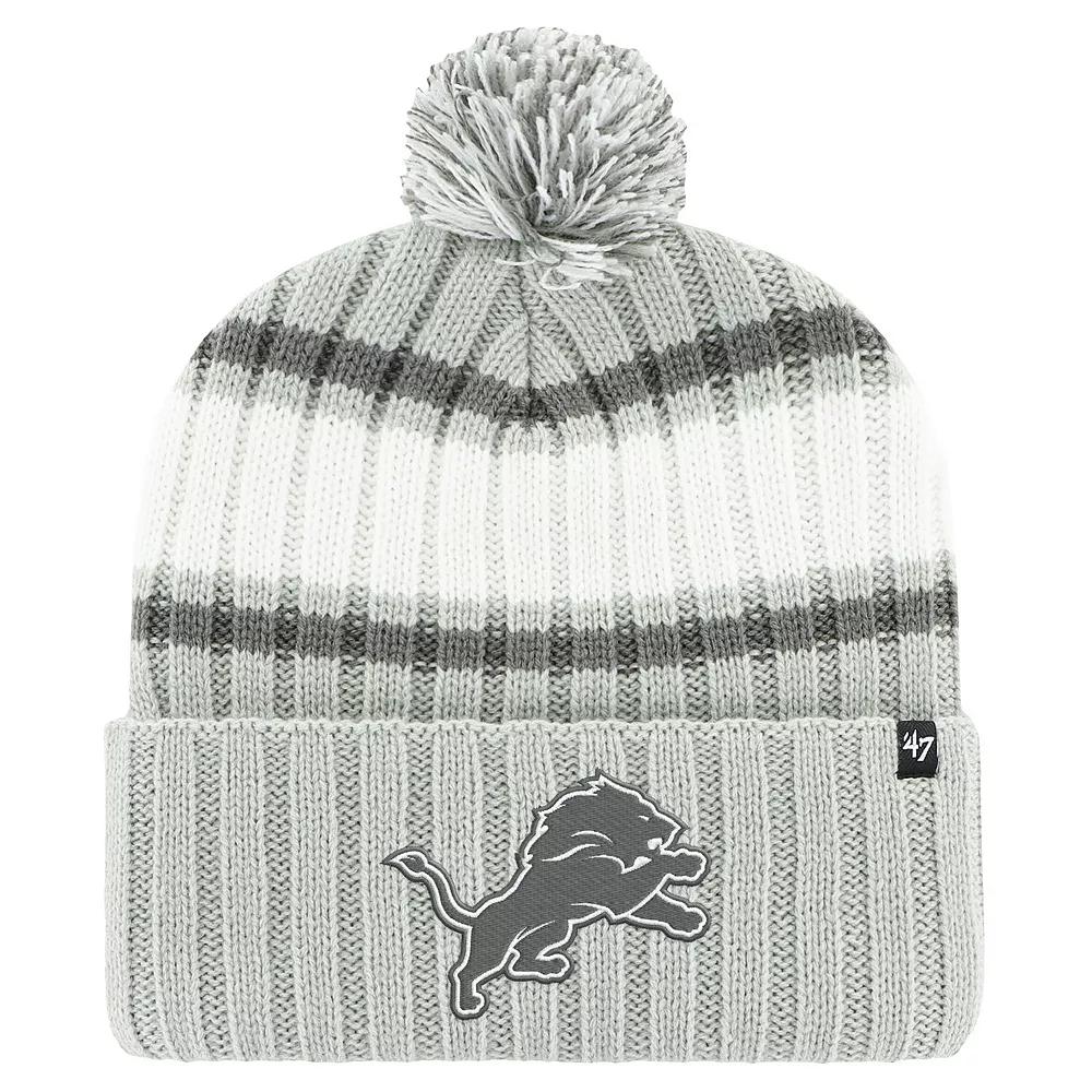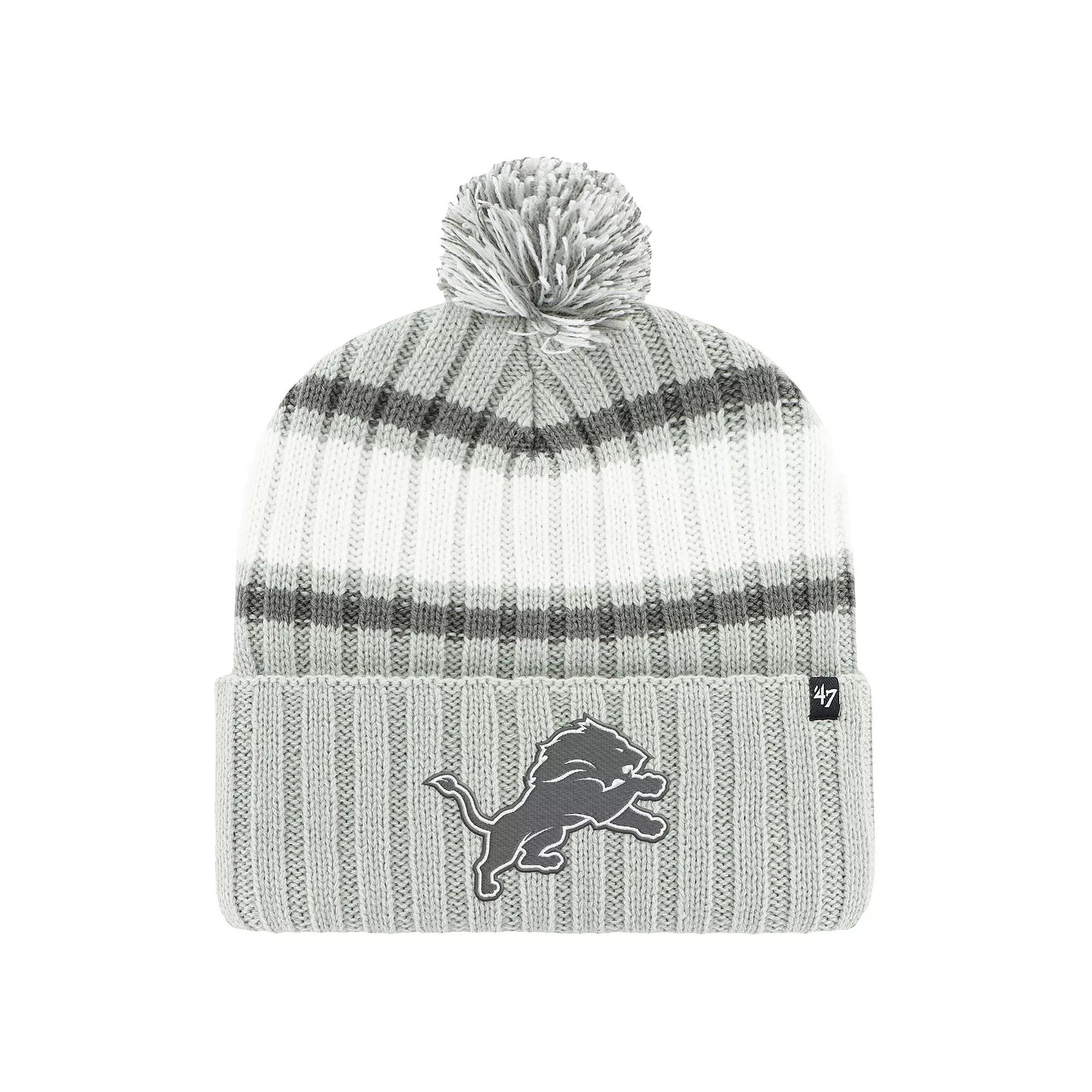 Stay warm while representing your Detroit Lions in this 47 Plateau Cuffed Knit Hat with Pom. It features an embroidered applique with the team logo on the cuff to make who youre rooting for easily noticeable. The knit striped pattern adds a touch of texture and visual interest to this cozy Detroit Lions headwear.Stay warm while representing your Detroit Lions in this 47 Plateau Cuffed Knit Hat with Pom. It features an embroidered applique with the team logo on the cuff to make who youre rooting for easily noticeable. The knit striped pattern adds a touch of texture and visual interest to this cozy Detroit Lions headwear.PRODUCT FEATURESImportedCuffed knit hatMaterial: 100% AcrylicOne size fits mostOfficially licensedEmbroidered applique with team logo on cuffPom on topHand wash, dry flatKnit striped patternBrand: 47 Size: One Size. Color: Grey. Gender: male. Age Group: adult.