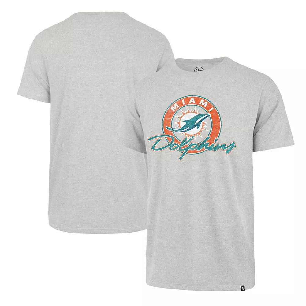 This 47 Ringtone Franklin T-shirt adds a vintage touch to your team gear. Distressed Miami Dolphins graphics inspire a throwback look, illustrating youre no casual fan. With a classic crew neck design, this tee is perfect for a relaxed Miami Dolphins outfit.This 47 Ringtone Franklin T-shirt adds a vintage touch to your team gear. Distressed Miami Dolphins graphics inspire a throwback look, illustrating youre no casual fan. With a classic crew neck design, this tee is perfect for a relaxed Miami Dolphins outfit.PRODUCT FEATURESOfficially licensedMachine wash, tumble dry lowImportedBrand: 47Short sleeveCrew neckMaterial: 53% Cotton/47% PolyesterDistressed screen print graphics Color: Grey. Gender: male. Age Group: adult.