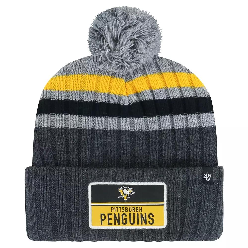 To show team spirit while keeping warm, sport this cuffed 47 Stack hat. A knit design supplies the ideal coverage, stretch and warmth for the ultimate fit. A striking Pittsburgh Penguins applique, coordinating stripes and a top pom combine for a charming accessory.To show team spirit while keeping warm, sport this cuffed 47 Stack hat. A knit design supplies the ideal coverage, stretch and warmth for the ultimate fit. A striking Pittsburgh Penguins applique, coordinating stripes and a top pom combine for a charming accessory.PRODUCT FEATURESHand wash, dry flatPom on topBrand: 47Officially licensedCuffed knit hatOne size fits mostImportedEmbroidered fabric appliqueMaterial: 100% AcrylicKnit design Size: One Size. Color: Grey. Gender: male. Age Group: adult.
