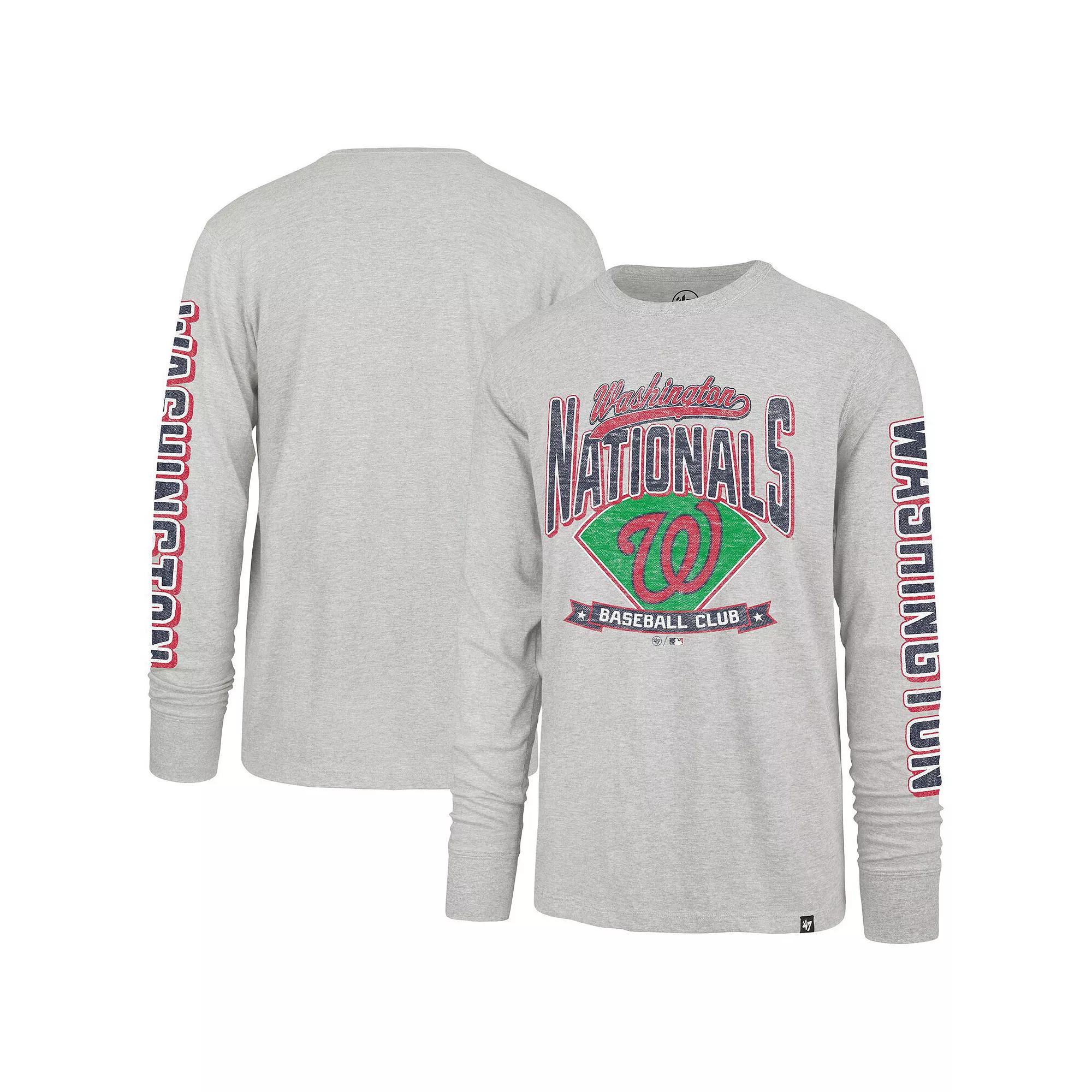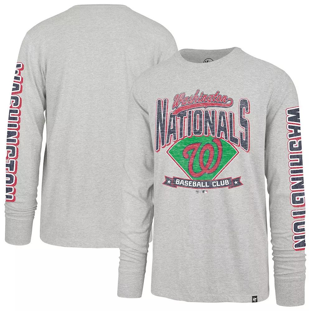 Cheer on the Washington Nationals from the ballpark to the living room in this 47 Fair Ball Franklin Long Sleeve T-Shirt. This long sleeve Washington Nationals tee features distressed screen print graphics on the chest and sleeve for vintage-inspired style. Plus, the rib-knit cuffs and neckline offer a snug, comfortable fit.Cheer on the Washington Nationals from the ballpark to the living room in this 47 Fair Ball Franklin Long Sleeve T-Shirt. This long sleeve Washington Nationals tee features distressed screen print graphics on the chest and sleeve for vintage-inspired style. Plus, the rib-knit cuffs and neckline offer a snug, comfortable fit.PRODUCT FEATURESCrew neckBrand: 47Officially licensedDistressed screen print graphics on center front chest and down left sleeveLong sleeveImportedRib-knit cuff and necklineMaterial: 100% CottonMachine wash, tumble dry low Size: 3XL. Color: Grey. Gender: male. Age Group: adult.