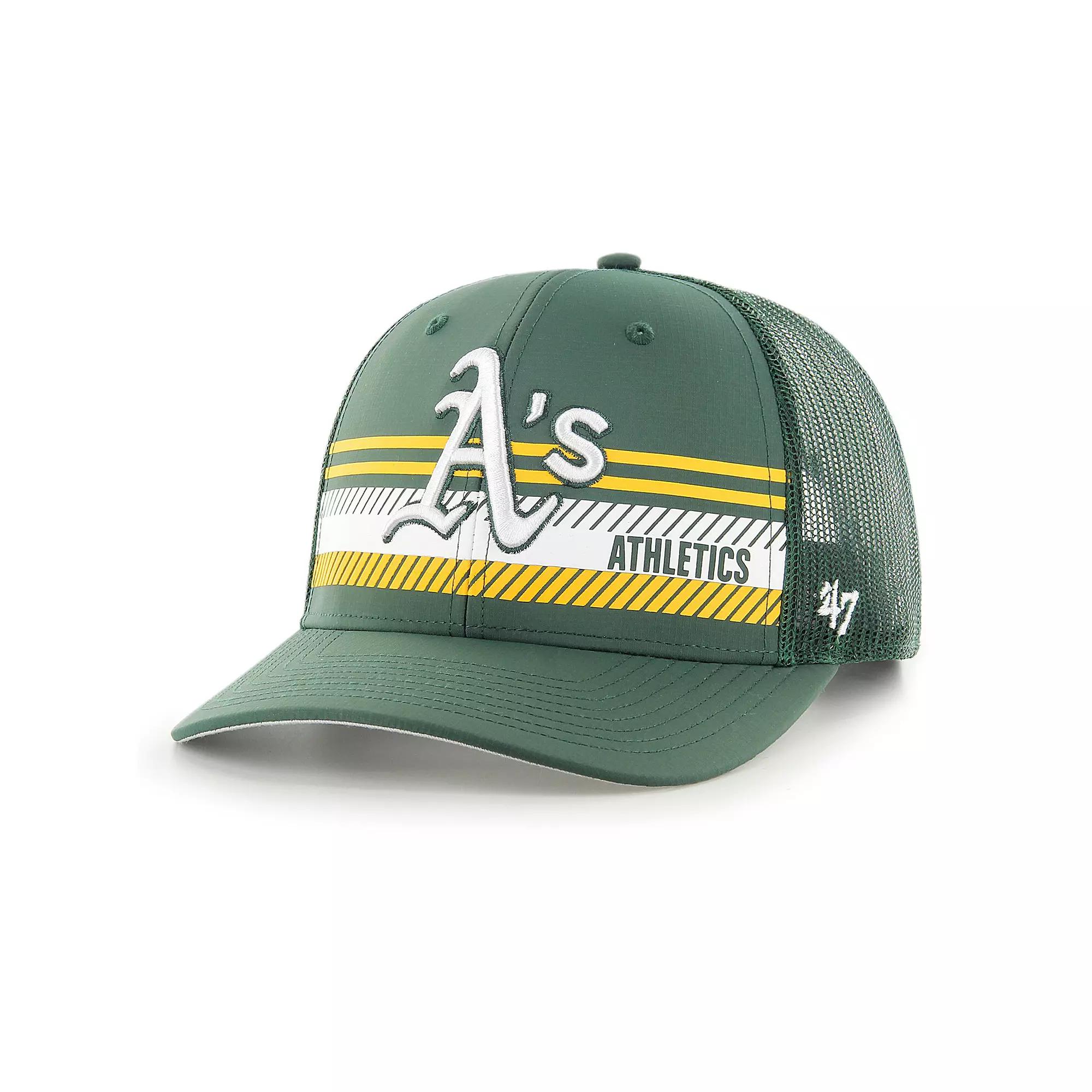 This 47 Cumberland snapback trucker hat is the perfect way to display your Oakland Athletics fandom in style. The four mesh panels and adjustable snap closure allow for supreme breathability and comfort. The cap features a bold design around the Oakland Athletics logo to let everyone know your pride runs deep.This 47 Cumberland snapback trucker hat is the perfect way to display your Oakland Athletics fandom in style. The four mesh panels and adjustable snap closure allow for supreme breathability and comfort. The cap features a bold design around the Oakland Athletics logo to let everyone know your pride runs deep.PRODUCT FEATURESBrand: 47Contrast-color undervisorCooling mineralsCurved billEmbroidered graphics with raised detailsHeat-sealed graphicsImportedMaterial: 100% Nylon - Material I; 100% Polyester - Material IIMesh mid and rear panelsMid CrownMoisture wicking technology to keep you cool and dryOfficially licensedOne size fits mostRapid dryingSnapbackSolid front panels with eyeletsStructured fitSurface washable Size: One Size. Color: Green. Gender: male. Age Group: adult.