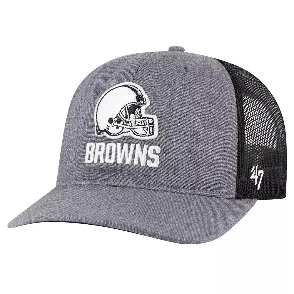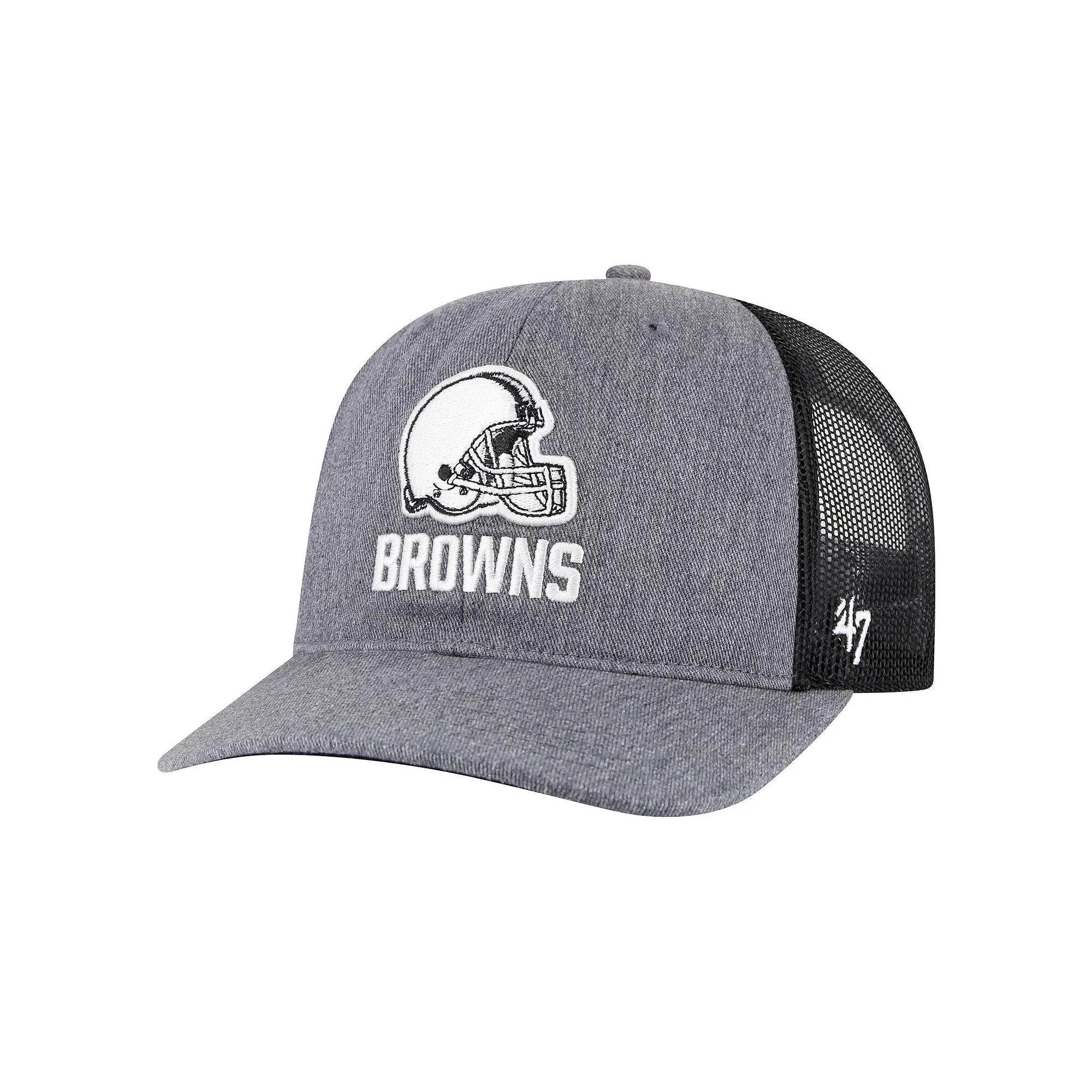 Show off your Cleveland Browns pride with this 47 Carbon Trucker Adjustable Hat. This Cleveland Browns hat boasts a classic trucker design with solid front panels and breathable mesh back panels. Its the perfect piece to top off any game day outfit.Show off your Cleveland Browns pride with this 47 Carbon Trucker Adjustable Hat. This Cleveland Browns hat boasts a classic trucker design with solid front panels and breathable mesh back panels. Its the perfect piece to top off any game day outfit.PRODUCT FEATURESOne size fits mostMaterial: 100% CottonCurved billUnstructured relaxed fitEmbroidered team logo on frontMid CrownMesh mid and rear panelsBrand: 47Officially licensedImportedWipe clean with a damp clothSolid front panels with eyeletsSnap Closure Size: One Size. Color: Charco. Gender: male. Age Group: adult.