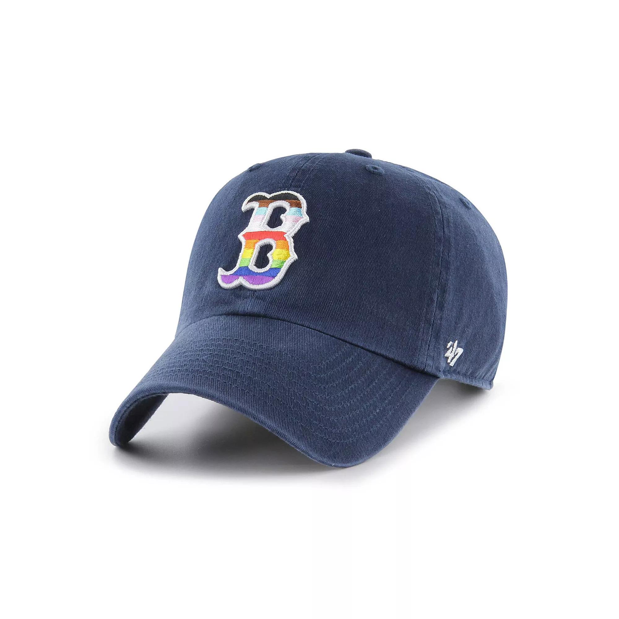 Show your colors as a true Boston Red Sox fan with this Pride Clean Up hat from 47. The teams logo shines brilliantly with the colors of the pride flag, while the solid panels provide a relaxed fit thats easily adjustable, thanks to the strap in the back. Pair this with any of your other pieces of Boston Red Sox gear for a full-fledged team getup.Show your colors as a true Boston Red Sox fan with this Pride Clean Up hat from 47. The teams logo shines brilliantly with the colors of the pride flag, while the solid panels provide a relaxed fit thats easily adjustable, thanks to the strap in the back. Pair this with any of your other pieces of Boston Red Sox gear for a full-fledged team getup.PRODUCT FEATURESOfficially licensedSix panels with eyeletsBrand: 47Wipe clean with a damp clothCurved billEmbroidered graphics with raised detailsLow crownOne size fits mostMaterial: 100% CottonUnstructured relaxed fitImportedAdjustable fabric strap with snap buckleWoven clip tag Size: One Size. Color: Navy. Gender: male. Age Group: adult.