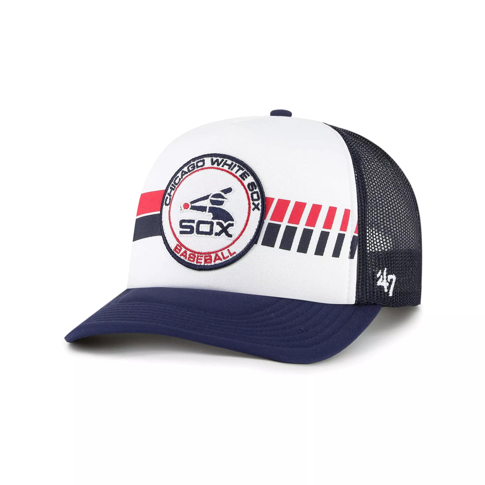 Top off any fan look with this Chicago White Sox Wax Pack Express hat. Crafted by 47, it features striking team graphics over a bold printed design. The mesh panels and snap closure add classic touches to this Chicago White Sox trucker hat.Top off any fan look with this Chicago White Sox Wax Pack Express hat. Crafted by 47, it features striking team graphics over a bold printed design. The mesh panels and snap closure add classic touches to this Chicago White Sox trucker hat.PRODUCT FEATURESMid CrownStructured fitOfficially licensedSnap ClosureMaterial: 100% PolyesterCurved billPrinted graphicsOne size fits mostMesh mid and rear panelSolid front panelWipe clean with a damp clothImportedBrand: 47Heat-sealed applique with embroidered details Size: One Size. Color: Navy. Gender: male. Age Group: adult. Material: COTTON.