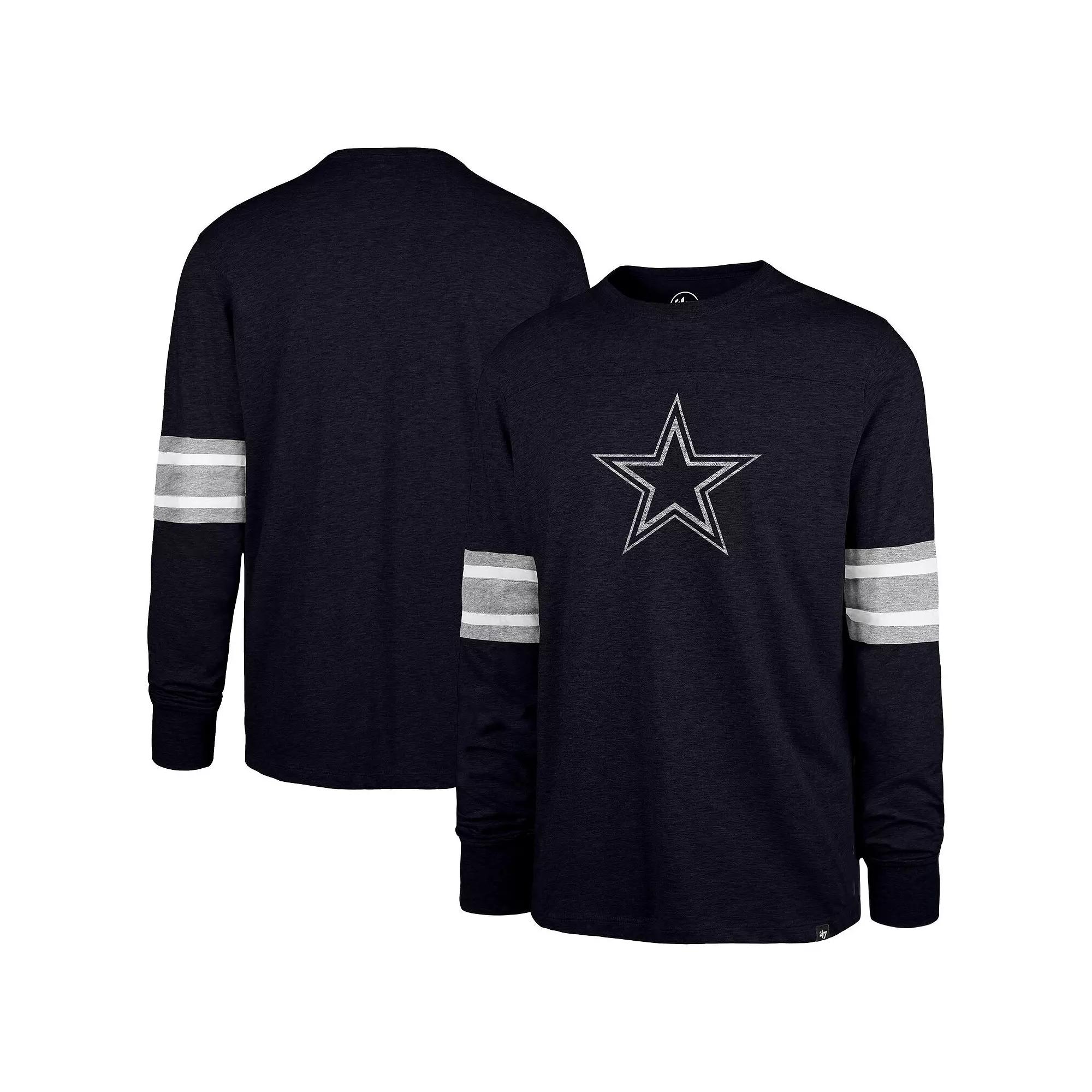 Embrace classic Dallas Cowboys style with this '47 Premier Brex Long Sleeve T-Shirt. This long sleeve tee features sewn-on sleeve stripes in team colors, adding a touch of classic athletic style to your look. The 100% cotton fabric provides all-day comfort, making it a great choice for game day or any casual occasion.Embrace classic Dallas Cowboys style with this '47 Premier Brex Long Sleeve T-Shirt. This long sleeve tee features sewn-on sleeve stripes in team colors, adding a touch of classic athletic style to your look. The 100% cotton fabric provides all-day comfort, making it a great choice for game day or any casual occasion.PRODUCT FEATURESScreen print graphicsMaterial: 100% CottonLong sleeveMachine wash with garment inside out, tumble dry lowBrand: '47Crew neckImportedSewn-on sleeve stripes in team colorsTeam logo printed in a distressed design at center front for a vintage aestheticOfficially licensed Size: 2XL. Color: Navy. Gender: male. Age Group: adult.