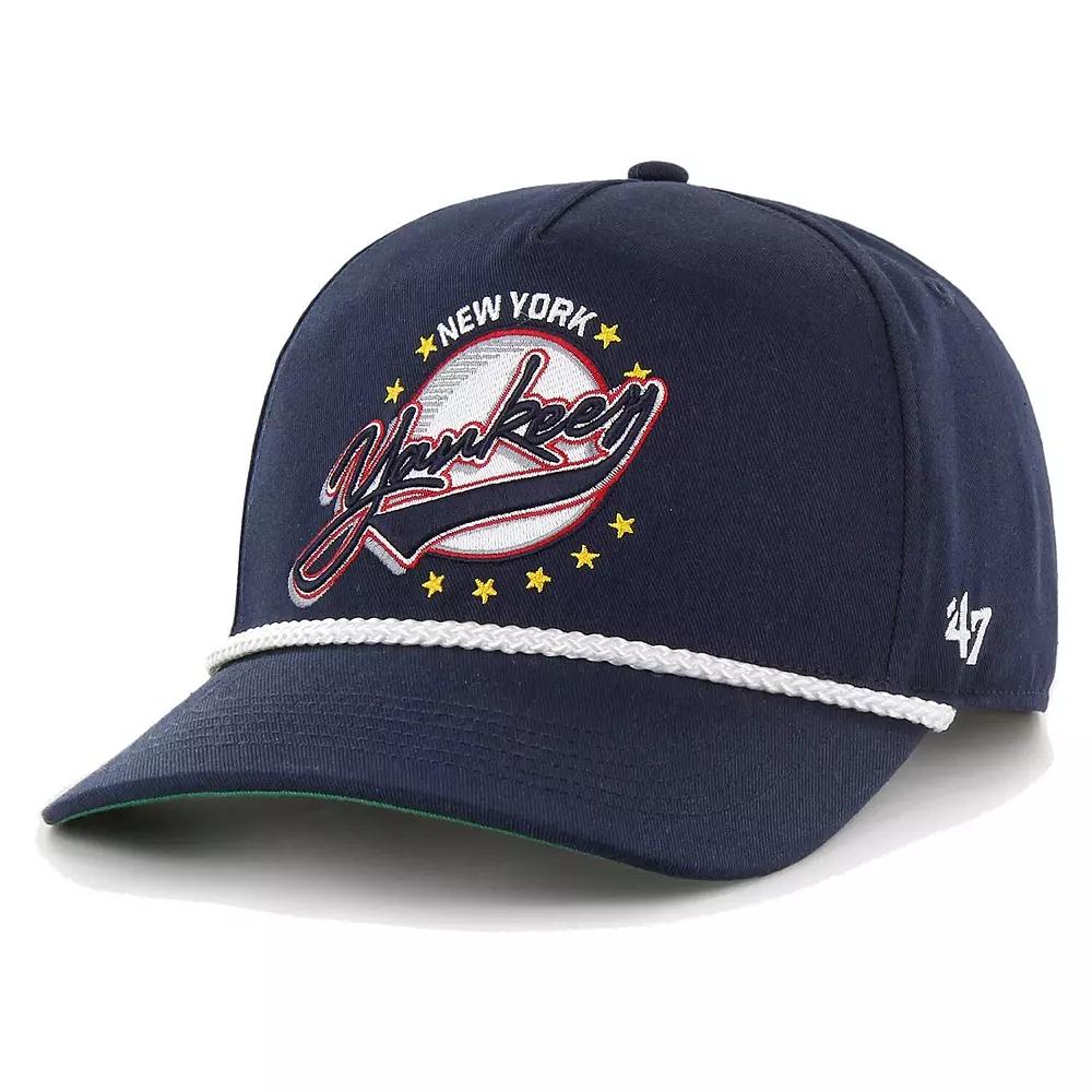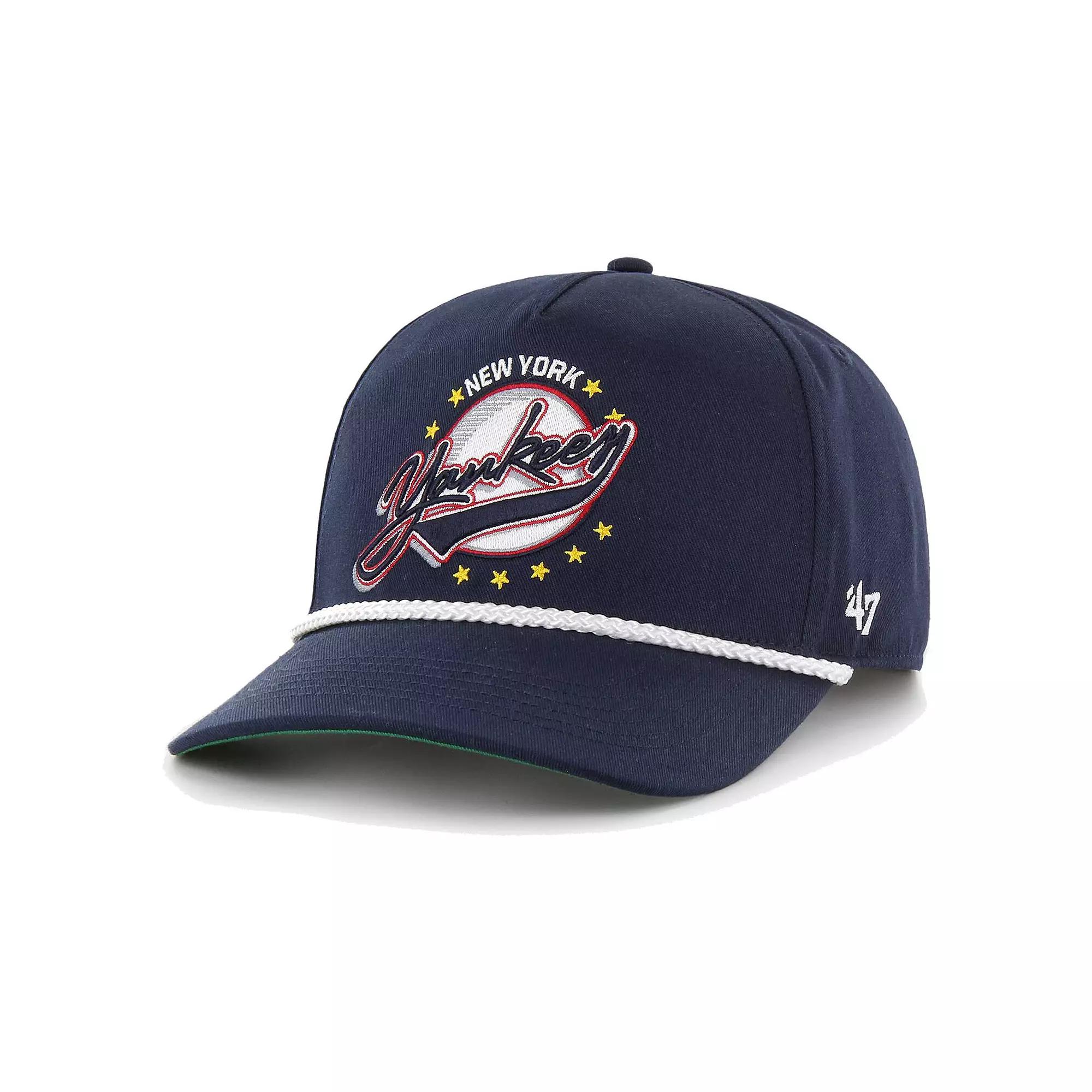 Bring back a bygone era of baseball with this New York Yankees Premier Hitch hat. As part of the 47 Wax Pack Collection, its New York Yankees graphics in raised embroidery are inspired by 80s uniforms and baseball cards. A snap closure makes adjusting the fit quick and easy.Bring back a bygone era of baseball with this New York Yankees Premier Hitch hat. As part of the 47 Wax Pack Collection, its New York Yankees graphics in raised embroidery are inspired by 80s uniforms and baseball cards. A snap closure makes adjusting the fit quick and easy.PRODUCT FEATURESCurved billStructured fitSnap ClosureOfficially licensedBrand: 47Material: 100% CottonImportedGreen undervisorMid CrownRope embellishment on visorOne size fits mostWipe clean with a damp clothFive panels with mid and rear eyeletsEmbroidered graphics with raised details Size: One Size. Color: Navy. Gender: male. Age Group: adult.