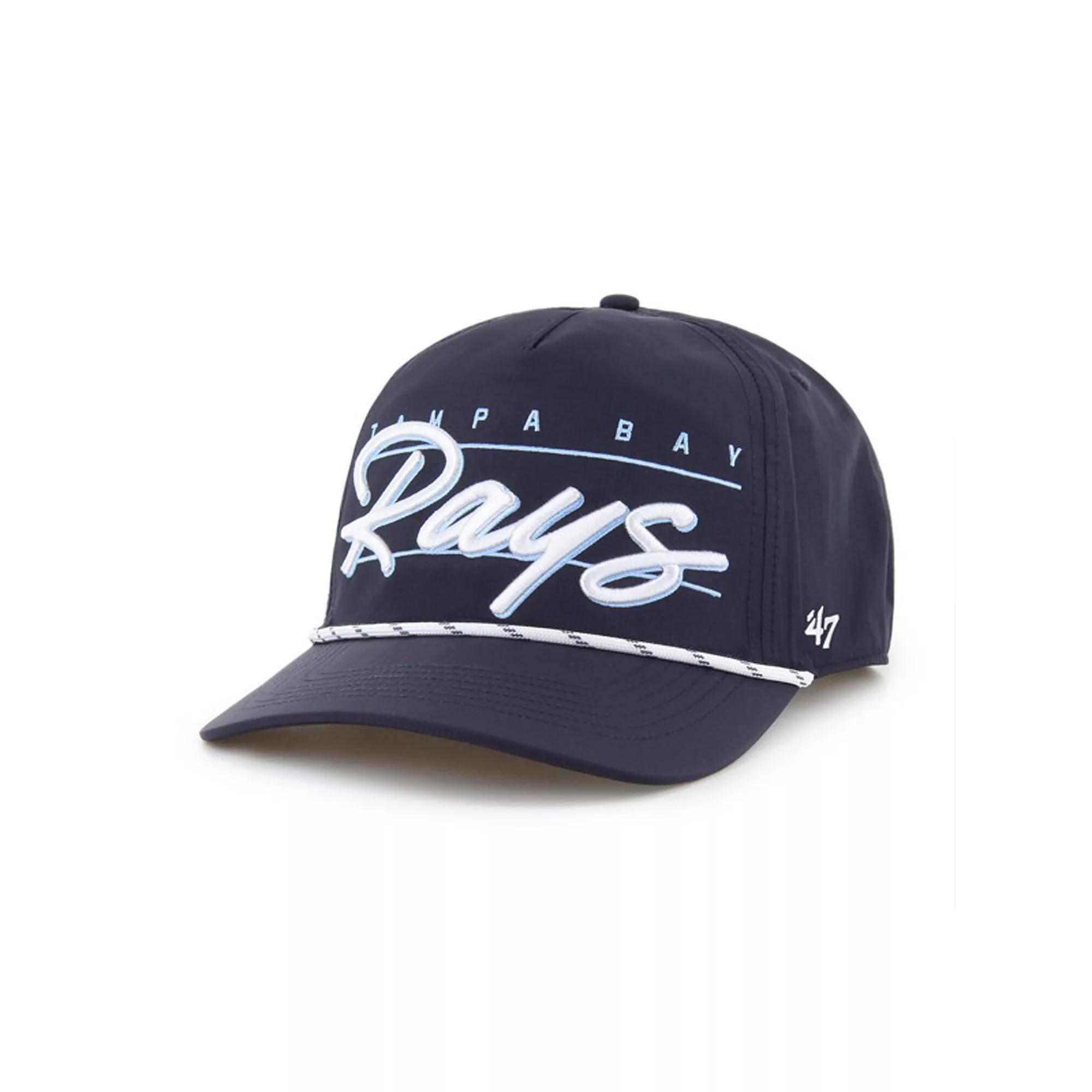 Complete your Tampa Bay Rays game day look with this '47 Condor Hitch Adjustable Hat. The '47 Hitch features a retro-inspired silhouette constructed with a pinched five-panel crown and a braided rope cord for a unique and stylish look. With embroidered Tampa Bay Rays graphics, this hat lets you rep your team with a timeless aesthetic.Complete your Tampa Bay Rays game day look with this '47 Condor Hitch Adjustable Hat. The '47 Hitch features a retro-inspired silhouette constructed with a pinched five-panel crown and a braided rope cord for a unique and stylish look. With embroidered Tampa Bay Rays graphics, this hat lets you rep your team with a timeless aesthetic.PRODUCT FEATURESWipe clean with a damp clothRope embellishment across visorSnap ClosureMaterial: 100% NylonBrand: '47Slightly Curved BillImportedFive panels with eyeletsStructured fitOne size fits mostThe '47 Hitch is a retro-inspired silhouette constructed with a pinched five-panel crown and a braided rope cordMid CrownEmbroidered graphics with raised detailsWoven clip tagOfficially licensed Size: One Size. Color: Navy. Gender: male. Age Group: adult.