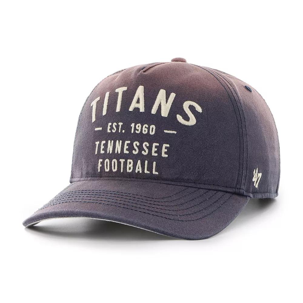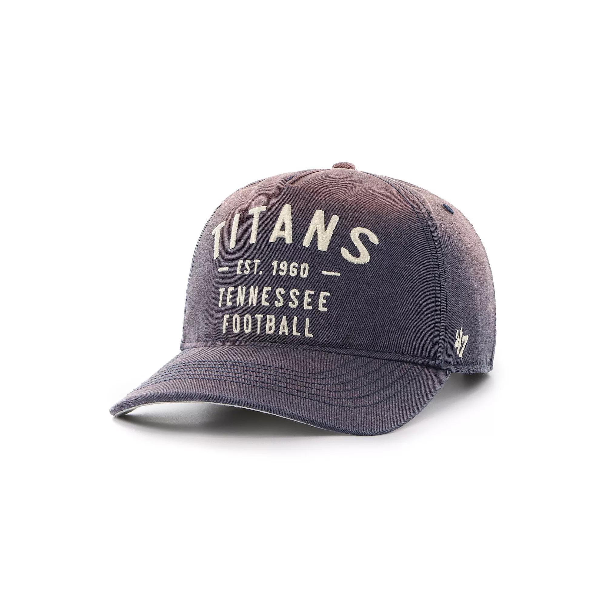 Get ready to cheer on your Tennessee Titans with this 47 Dusted Laramie Unstructured Hitch Adjustable Hat. The 47 Hitch boasts a retro-inspired silhouette constructed with a pinched five-panel crown and a braided rope cord, adding a touch of vintage flair to your game-day look. Its sun-faded design provides a lived-in look and feel, while the embroidered Tennessee Titans wordmark arching over the established date on the front panels proudly displays your team pride.Get ready to cheer on your Tennessee Titans with this 47 Dusted Laramie Unstructured Hitch Adjustable Hat. The 47 Hitch boasts a retro-inspired silhouette constructed with a pinched five-panel crown and a braided rope cord, adding a touch of vintage flair to your game-day look. Its sun-faded design provides a lived-in look and feel, while the embroidered Tennessee Titans wordmark arching over the established date on the front panels proudly displays your team pride.PRODUCT FEATURESEmbroidered team logo on right sideSun-faded design provides a lived-in lookMid CrownCurved billMaterial: 100% CottonSnap ClosureOfficially licensedMid and rear panels with eyeletsOne size fits mostContrast-color undervisorThe 47 Hitch is a retro-inspired silhouette constructed with a pinched five-panel crown and a braided rope cordImportedEmbroidered team wordmark arches over the established date on front panelsUnstructured relaxed fitBrand: 47Wipe clean with a damp cloth Size: One Size. Color: Navy. Gender: male. Age Group: adult.