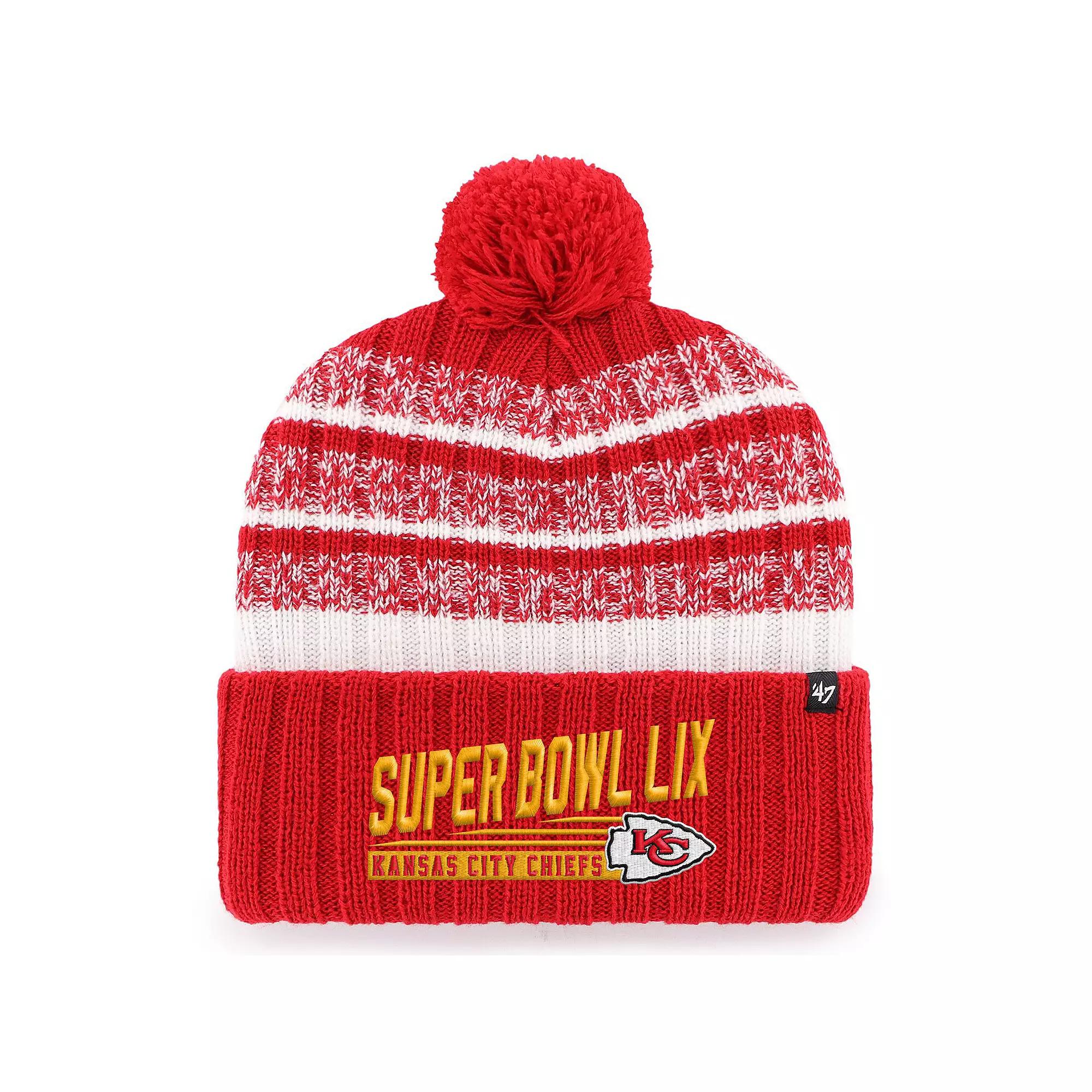 After a hard-fought season full of epic plays and clutch touchdowns, the Kansas City Chiefs have made it all the way to the Super Bowl! Get ready to cheer them on with this Tavern Cuffed Knit Hat with Pom from 47. Featuring commemorative Kansas City Chiefs graphics, this piece is perfect for celebrating your favorite NFL team making it to Super Bowl LIX.After a hard-fought season full of epic plays and clutch touchdowns, the Kansas City Chiefs have made it all the way to the Super Bowl! Get ready to cheer them on with this Tavern Cuffed Knit Hat with Pom from 47. Featuring commemorative Kansas City Chiefs graphics, this piece is perfect for celebrating your favorite NFL team making it to Super Bowl LIX.PRODUCT FEATURESPom on topOfficially licensedOne size fits mostBrand: 47ImportedCuffed knit hatMaterial: 100% AcrylicThis item is non-returnableRaised embroidered graphicsWipe clean with a damp cloth Size: One Size. Gender: male. Age Group: adult.