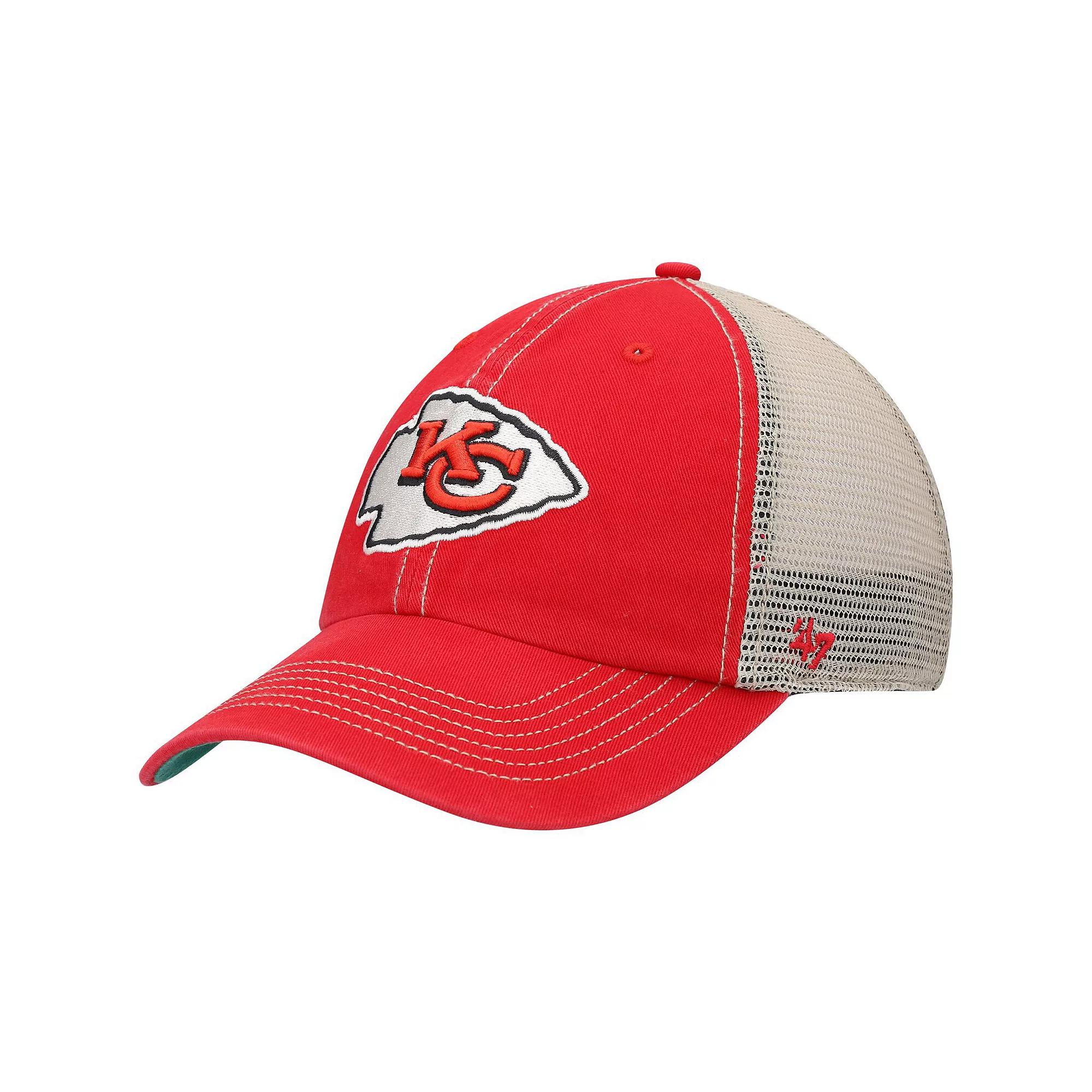 Demonstrate your timeless devotion to the Kansas City Chiefs with this Trawler Trucker Clean Up hat from 47. It features a large Kansas City Chiefs logo embroidered on faded-looking fabric. In addition, mesh panels create a breezy feel, and the snapback closure makes adjusting the fit simple.Demonstrate your timeless devotion to the Kansas City Chiefs with this Trawler Trucker Clean Up hat from 47. It features a large Kansas City Chiefs logo embroidered on faded-looking fabric. In addition, mesh panels create a breezy feel, and the snapback closure makes adjusting the fit simple.PRODUCT FEATURESContrast-color undervisorImportedTwo solid front panels with eyeletsMaterial: 100% Cotton Material I; 100% Polyester Material IIOne size fits mostLow crownOfficially licensedUnstructured relaxed fitBrand: 47Four mesh mid and rear panelsSurface washableCurved billEmbroidered graphics with raised detailsSnapback Size: One Size. Gender: male. Age Group: adult.