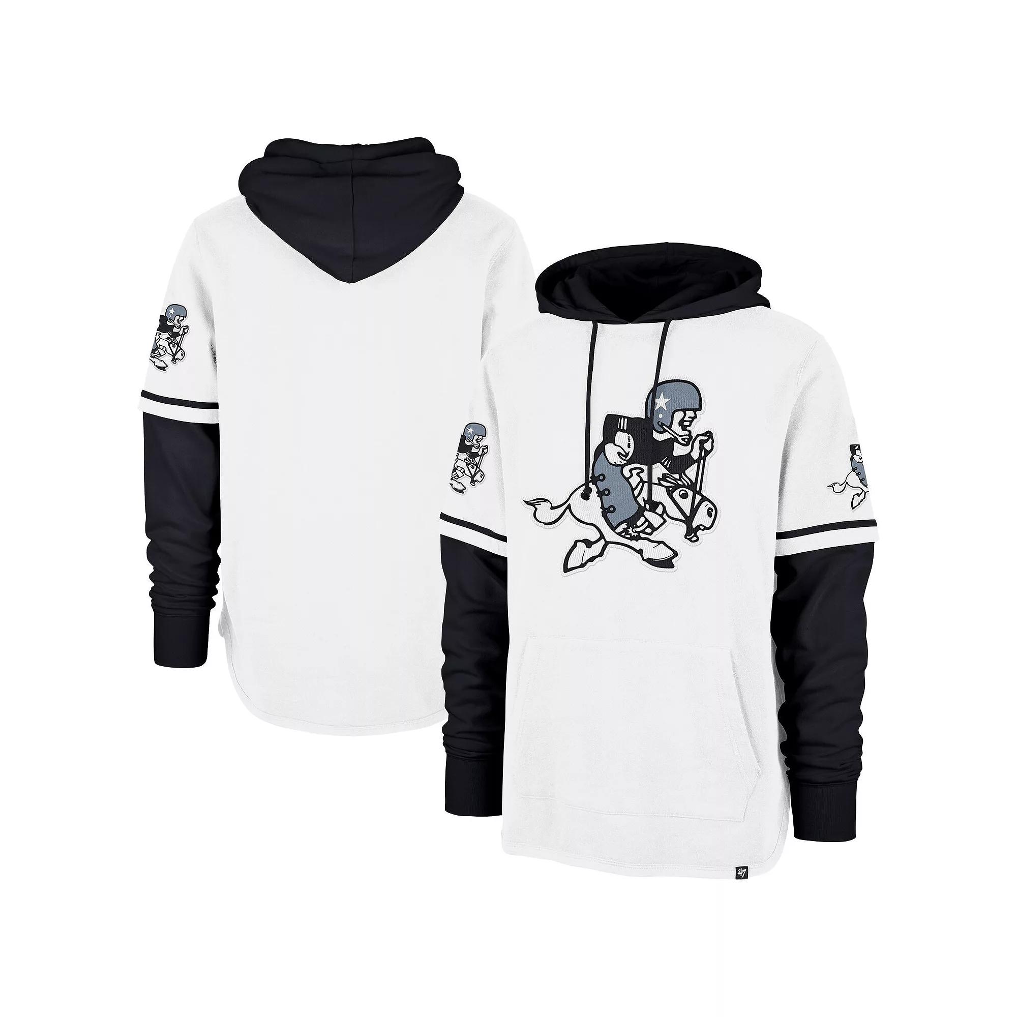 Stay warm and reppin your Dallas Cowboys with this 47 Throwback Shortstop Pullover Hoodie. This officially licensed hoodie features a fleece lining, making it ideal for moderate temperatures and providing a cozy feel for every game day. The embroidered fabric applique and faux short sleeves add a touch of vintage athletic style thats sure to turn heads.Stay warm and reppin your Dallas Cowboys with this 47 Throwback Shortstop Pullover Hoodie. This officially licensed hoodie features a fleece lining, making it ideal for moderate temperatures and providing a cozy feel for every game day. The embroidered fabric applique and faux short sleeves add a touch of vintage athletic style thats sure to turn heads.PRODUCT FEATURESPulloverMaterial: 80% Cotton/20% PolyesterEmbroidered fabric appliqueMachine wash, tumble dry lowLong sleeveOfficially licensedImportedFleece lining for added comfort and warmthBrand: 47HoodedRounded droptail hemMidweight hoodie suitable for moderate temperaturesFaux short sleevesFront pouch pocket Color: White. Gender: male. Age Group: adult.