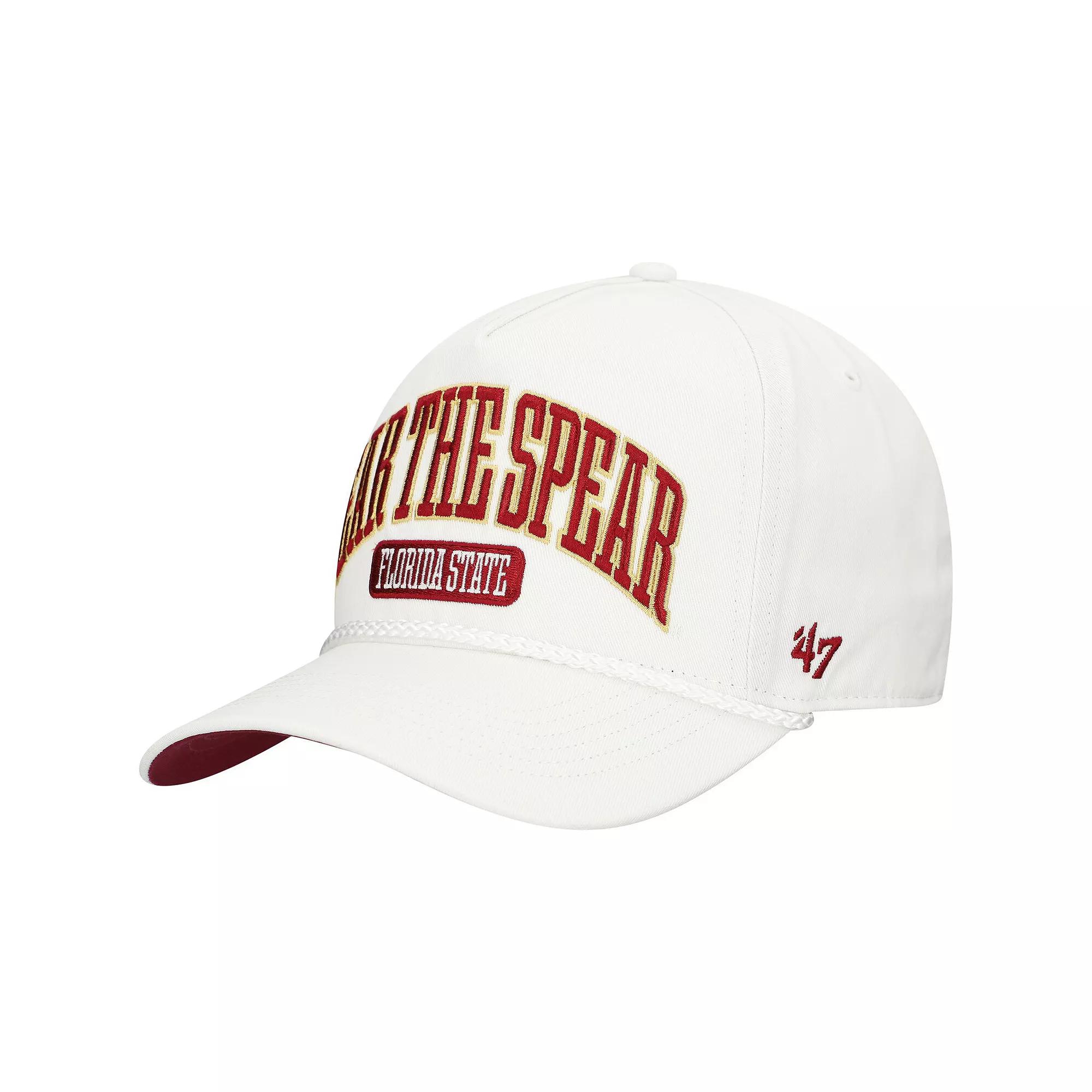 Complete your Florida State Seminoles game day look with this 47 Local Arch Hitch Snapback Hat. The 47 Hitch boasts a retro-inspired silhouette with a pinched five-panel crown and a semi-curved visor, adding a touch of vintage flair to your game day look. Featuring embroidered team graphics on the front and the logo on the right side panel, this hat proudly showcases your Seminoles pride.Complete your Florida State Seminoles game day look with this 47 Local Arch Hitch Snapback Hat. The 47 Hitch boasts a retro-inspired silhouette with a pinched five-panel crown and a semi-curved visor, adding a touch of vintage flair to your game day look. Featuring embroidered team graphics on the front and the logo on the right side panel, this hat proudly showcases your Seminoles pride.PRODUCT FEATURESOne size fits mostBrand: 47Structured fitWipe clean with a damp clothSnap ClosureImportedMid CrownContrast-color undervisorCurved billMid & rear panels with eyeletsEmbroidered team graphics on front, logo on right side panelMaterial: 100% CottonThe 47 Hitch is a retro-inspired silhouette constructed of a pinched five-panel crown, a semi-curved visor, a buckram panel for structure and a braided rope cordOfficially licensed Size: One Size. Color: White. Gender: male. Age Group: adult.