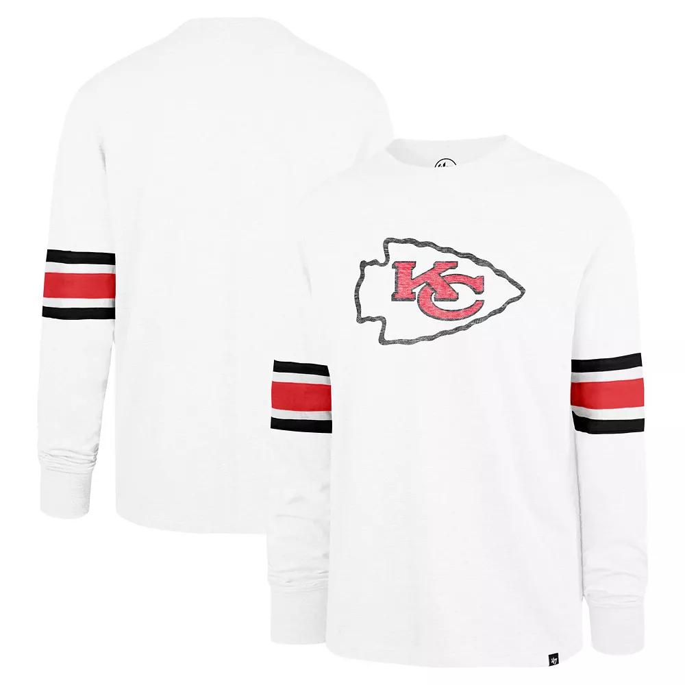 Showcase your Kansas City Chiefs pride in style with the 47 Gridiron Premier Brex Long Sleeve T-Shirt. Made from Franklin jersey fabric, this tee provides a soft and comfortable feel, perfect for all-day wear. The sewn-on sleeve stripes in team colors add a bold touch of Chiefs spirit, making it clear where your allegiance lies.Showcase your Kansas City Chiefs pride in style with the 47 Gridiron Premier Brex Long Sleeve T-Shirt. Made from Franklin jersey fabric, this tee provides a soft and comfortable feel, perfect for all-day wear. The sewn-on sleeve stripes in team colors add a bold touch of Chiefs spirit, making it clear where your allegiance lies.PRODUCT FEATURESScreen print graphicsMaterial: 100% CottonOfficially licensedTeam logo printed in a distressed design at center front for a vintage aestheticMade from Franklin jersey fabricImportedBrand: 47Crew neckLong sleevePart of the Gridiron CollectionSewn-on sleeve stripes in team colorsMachine wash with garment inside out, tumble dry low Size: 3XL. Color: White. Gender: male. Age Group: adult.