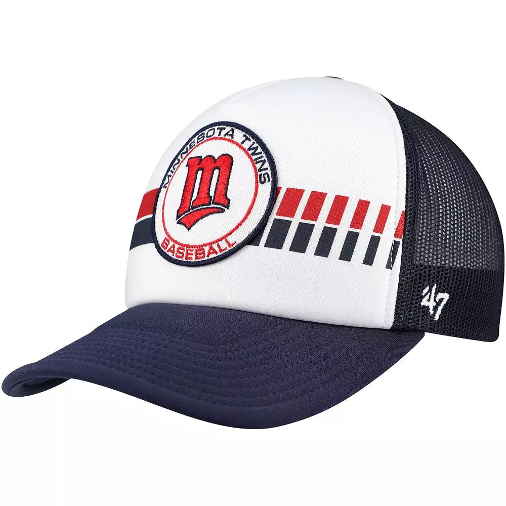Top off any fan look with this Minnesota Twins Wax Pack Express hat. Crafted by 47, it features striking team graphics over a bold printed design. The mesh panels and snap closure add classic touches to this Minnesota Twins trucker hat.Top off any fan look with this Minnesota Twins Wax Pack Express hat. Crafted by 47, it features striking team graphics over a bold printed design. The mesh panels and snap closure add classic touches to this Minnesota Twins trucker hat.PRODUCT FEATURESWipe clean with a damp clothSnap ClosureMid CrownMesh mid and rear panelsImportedBrand: 47Officially licensedMaterial: 100% PolyesterStructured fitCurved billPrinted graphicsSolid front panelOne size fits mostEmbroidered fabric applique Size: One Size. Color: Navy. Gender: male. Age Group: adult. Material: COTTON.