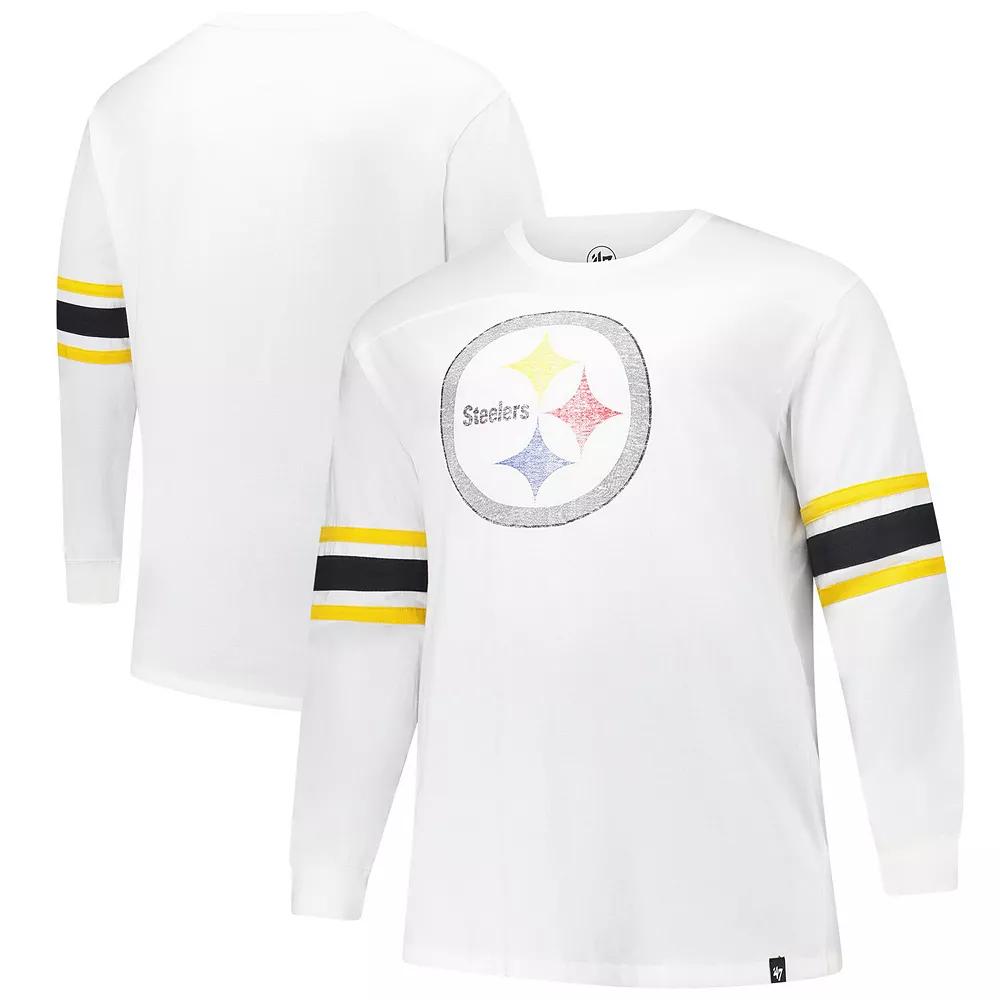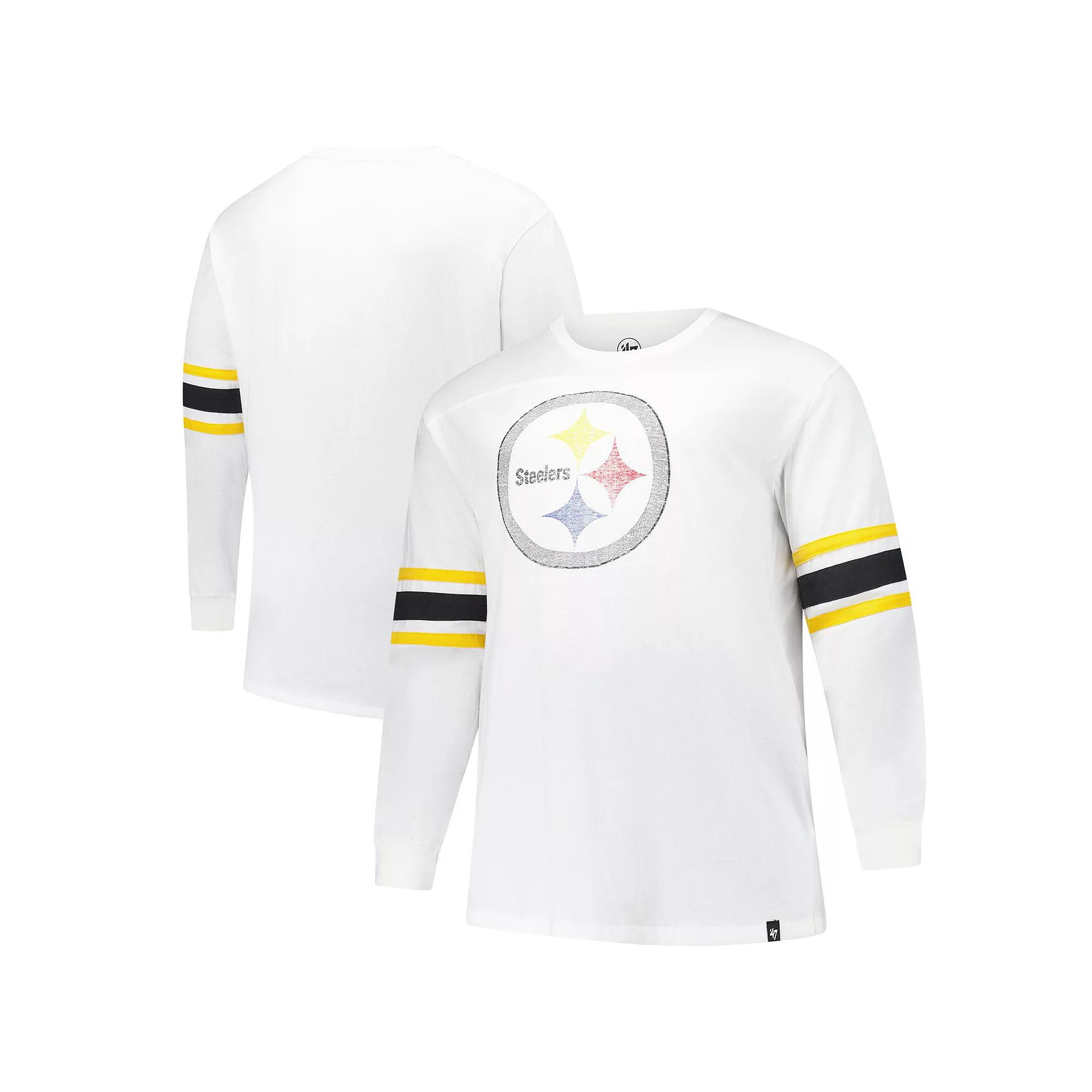 Enjoy classic Pittsburgh Steelers style with this 47 Premier Brex Long Sleeve T-Shirt. Made from breathable 100% cotton, this long sleeve tee features sewn-on contrasting sleeve stripes that add a touch of team spirit to its classic design. The distressed team logo printed at the center front provides a vintage look thats perfect for any Steelers fan.Enjoy classic Pittsburgh Steelers style with this 47 Premier Brex Long Sleeve T-Shirt. Made from breathable 100% cotton, this long sleeve tee features sewn-on contrasting sleeve stripes that add a touch of team spirit to its classic design. The distressed team logo printed at the center front provides a vintage look thats perfect for any Steelers fan.PRODUCT FEATURESSewn-on contrasting sleeve stripes in team colorsOfficially licensedFront yoke seamImportedMachine wash, tumble dry lowLong sleeveMaterial: 100% CottonCrew neck for a classic lookBrand: 47Team logo printed in a distressed design at center front Size: 2XLT. Color: White. Gender: male. Age Group: adult.