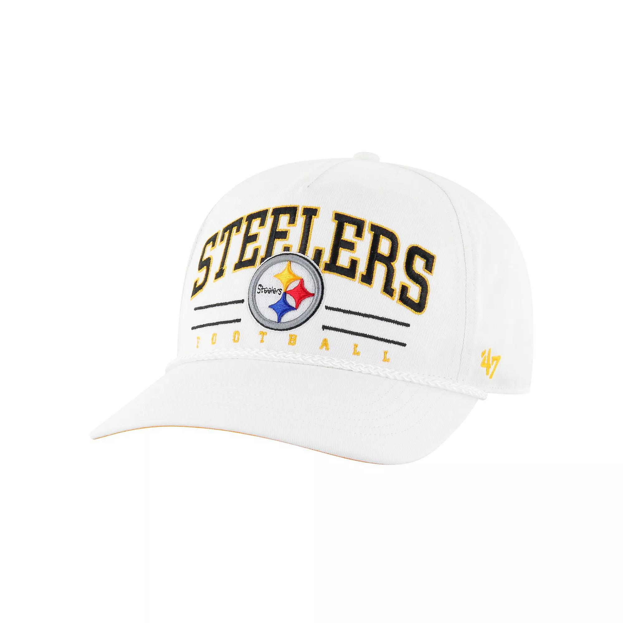 Boost your Pittsburgh Steelers style with this 47 Roscoe Hitch Rope Adjustable Hat. The 47 Hitch boasts a retro-inspired silhouette constructed with a pinched five-panel crown and a braided rope cord, adding a touch of vintage flair to your game-day look. Constructed from garment-washed cotton for a worn-in feel, this hat provides comfort and style from the first wear.Boost your Pittsburgh Steelers style with this 47 Roscoe Hitch Rope Adjustable Hat. The 47 Hitch boasts a retro-inspired silhouette constructed with a pinched five-panel crown and a braided rope cord, adding a touch of vintage flair to your game-day look. Constructed from garment-washed cotton for a worn-in feel, this hat provides comfort and style from the first wear.PRODUCT FEATURESOfficially licensedCurved billEmbroidered team logo and name across the front panelsWipe clean with a damp clothMid and rear panels with eyeletsSnap ClosureMaterial: 100% CottonImportedConstructed from garment-washed cotton for a worn-in feelMid CrownThe 47 Hitch is a retro-inspired silhouette constructed with a pinched five-panel crown and a braided rope cordBrand: 47Unstructured relaxed fitOne size fits mostContrast-color undervisor Size: One Size. Color: White. Gender: male. Age Group: adult.