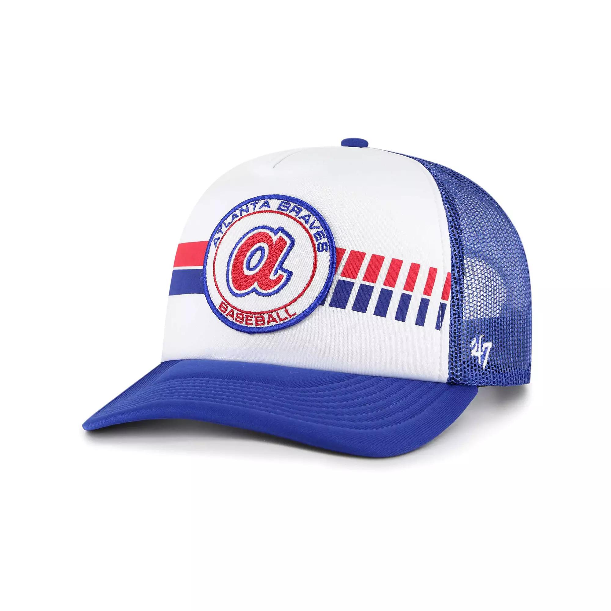 Top off any fan look with this Atlanta Braves Wax Pack Express hat. Crafted by 47, it features striking team graphics over a bold printed design. The mesh panels and snap closure add classic touches to this Atlanta Braves trucker hat.Top off any fan look with this Atlanta Braves Wax Pack Express hat. Crafted by 47, it features striking team graphics over a bold printed design. The mesh panels and snap closure add classic touches to this Atlanta Braves trucker hat.PRODUCT FEATURESCurved billMaterial: 100% PolyesterOne size fits mostImportedHeat-sealed applique with embroidered detailsSnap ClosureMid CrownWipe clean with a damp clothOfficially licensedBrand: 47Mesh mid and rear panelSolid front panelPrinted graphicsStructured fit Size: One Size. Color: Blue. Gender: male. Age Group: adult. Material: COTTON.