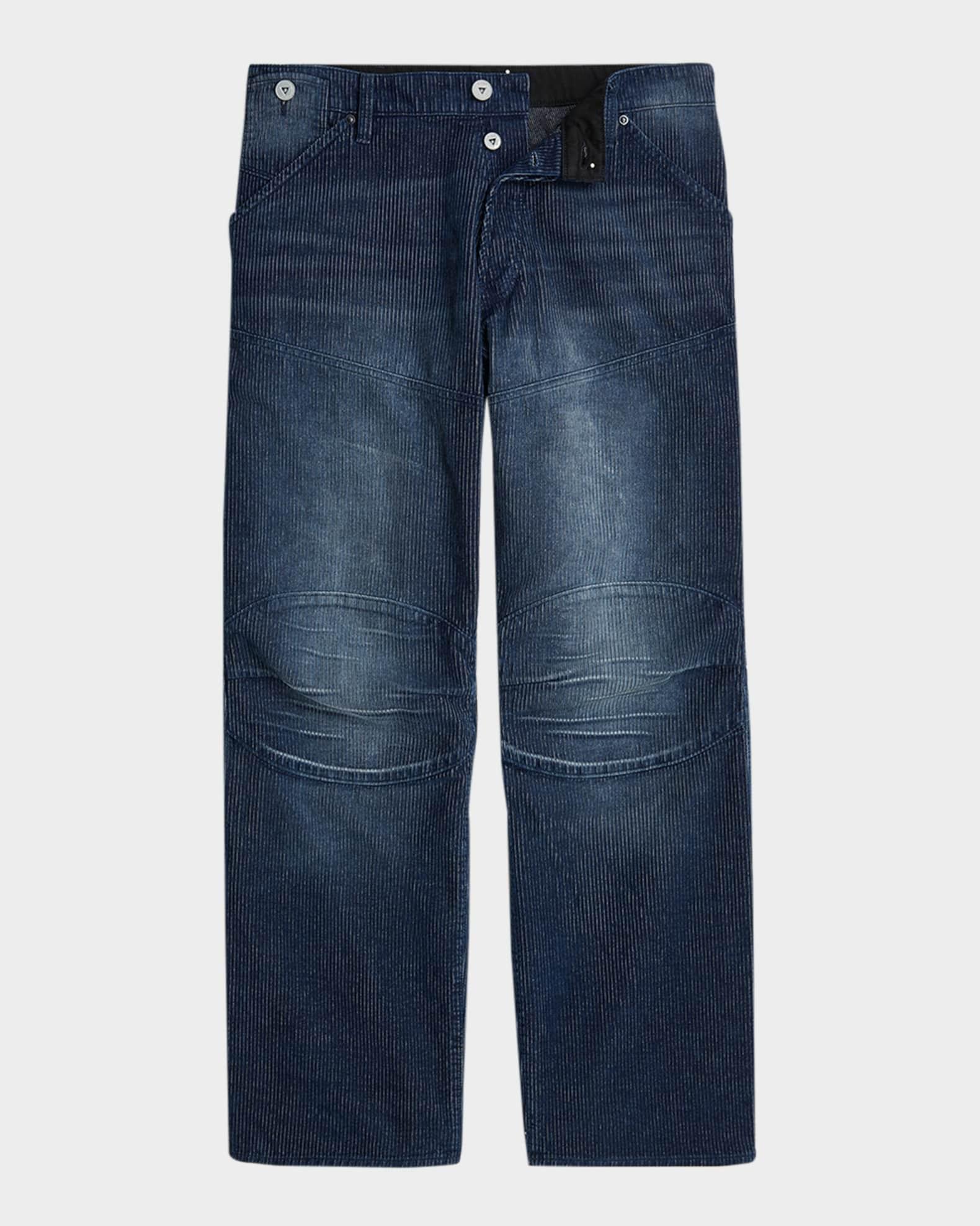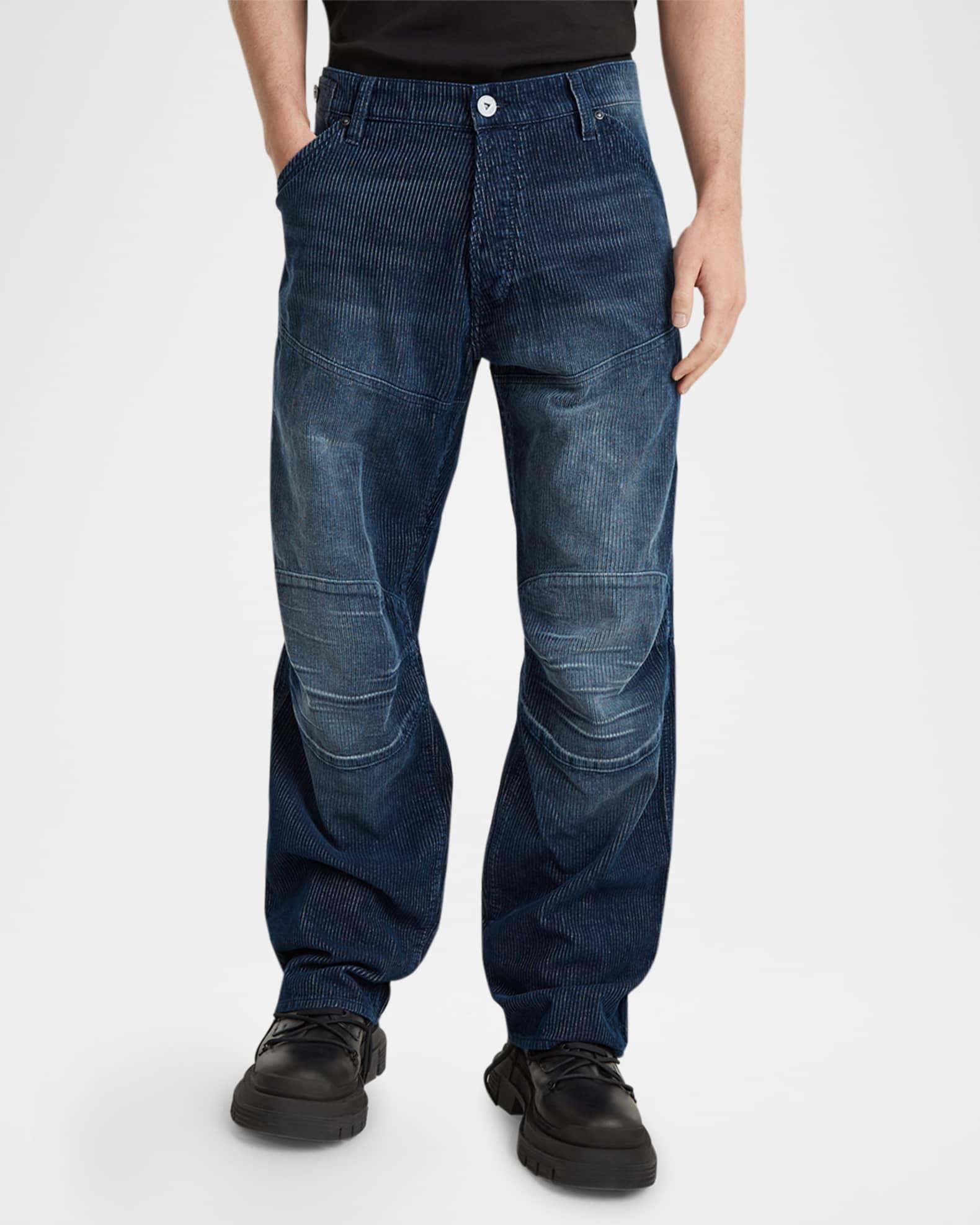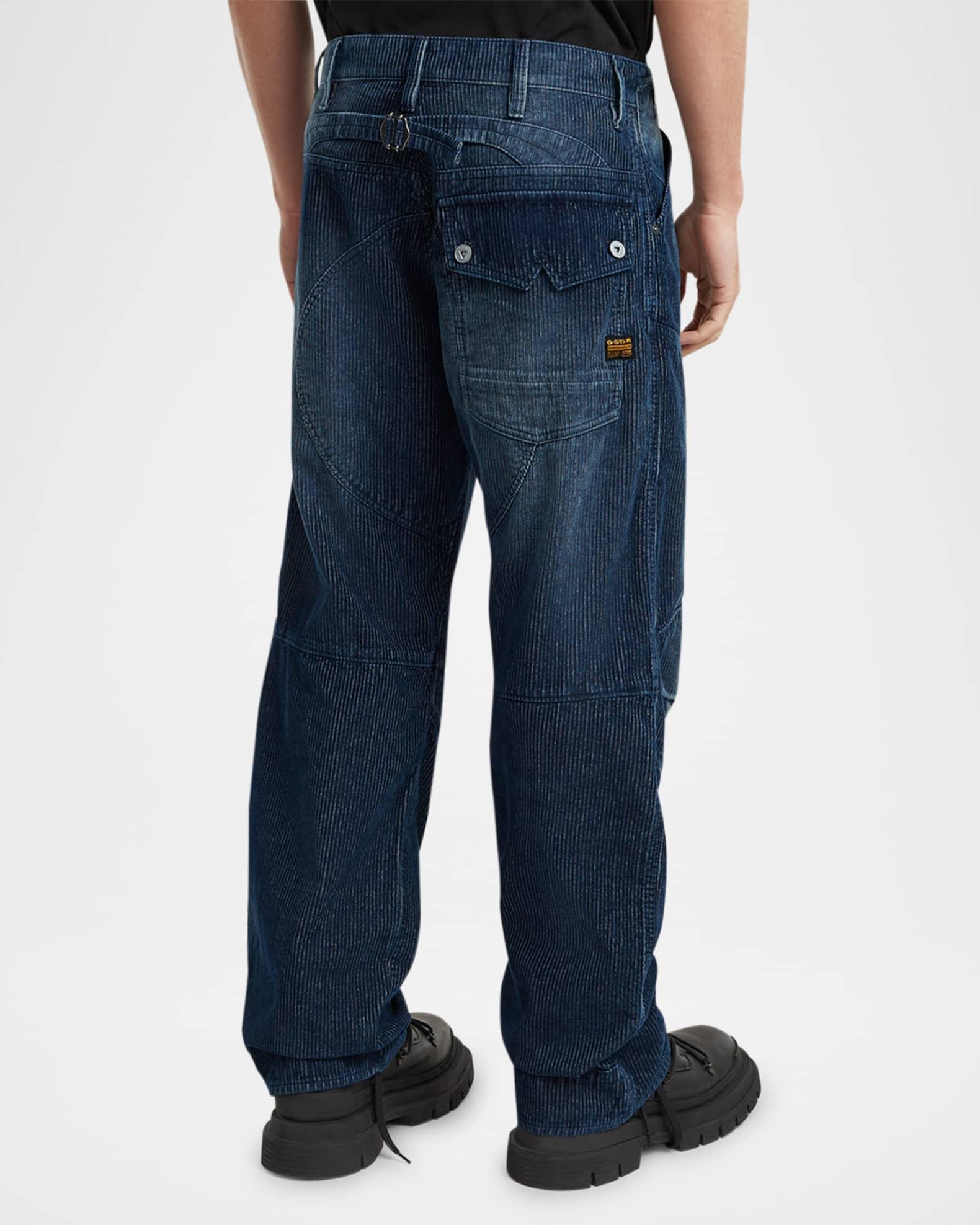 G-STAR RAW jeans in corduroy Button fly Rivet reinforced inset pockets Coin pocket at waistband Back flap pocket with shank buttons Adjustable strap at back waist Angled seams at thigh Knee patches Loose fit through straight legs Full length Cotton Machine wash cold, line dry Imported Model is 6'1"/185cm.