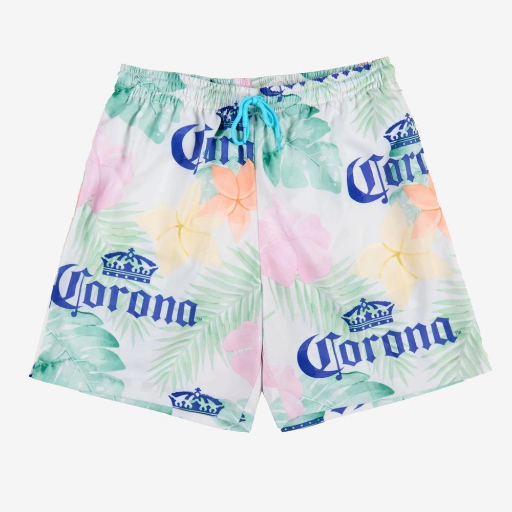 Dive into summer with these Mens 7 Corona Swim Shorts. These shorts are perfect for a day at the beach or lounging by the pool. Featuring Corona graphics, it adds a fresh, modern touch. Made from lightweight fabric, they offer comfort and style with an adjustable drawstring waist and a built-in brief for a comfy fit. Get ready to make a splash in these fun swim shorts.