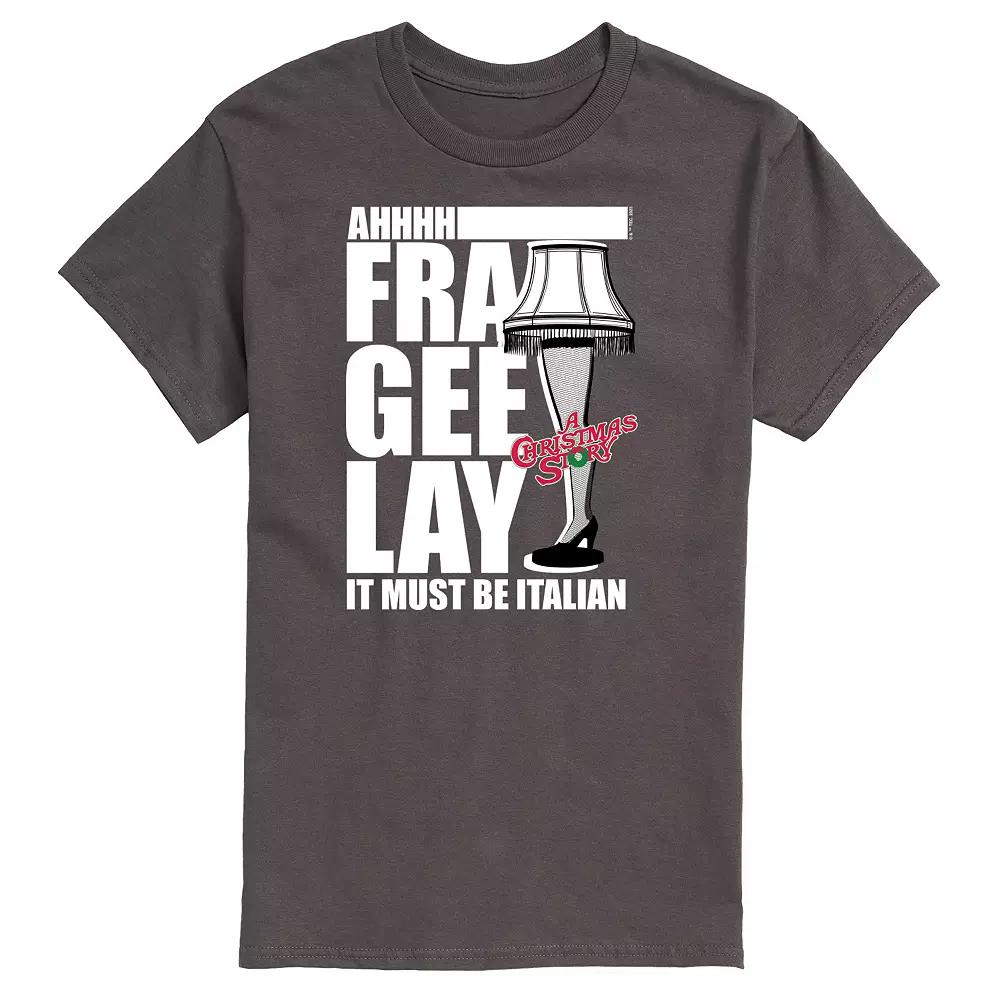 He will love showing off his holiday style with this Mens A Christmas Story Fra Gee Lay Graphic Tee. FEATURES Crewneck Short sleeveFABRIC & CARE Solid Colors: Cotton; Heather Colors: Cotton, Polyester Machine wash Imported Color: Charcoal. Gender: male. Age Group: adult.