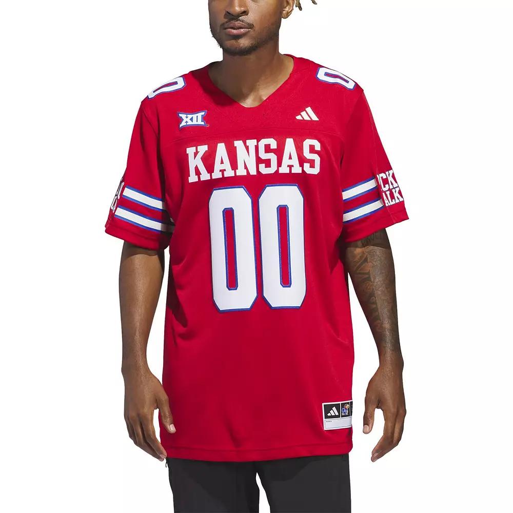 Step out on game day in style with this Kansas Jayhawks Alternate Premier Jersey. This lightweight Adult polo is made with AEROREADY technology to keep you cool and comfortable when the action on the gridiron gets hot. The fresh Kansas Jayhawks graphics will make this your favorite polo in your closet.Step out on game day in style with this Kansas Jayhawks Alternate Premier Jersey. This lightweight Adult polo is made with AEROREADY technology to keep you cool and comfortable when the action on the gridiron gets hot. The fresh Kansas Jayhawks graphics will make this your favorite polo in your closet.PRODUCT FEATURESV-neckJersey Color Style: AlternateImportedMachine wash, tumble dry lowHeat-sealed fabric appliquesWoven jock tag at hemHeat-sealed sleeve detailMaterial: 100% Recycled PolyesterTackle twill graphicsBrand: adidasPremier JerseyOfficially licensedShort sleeveDroptail hem with side splits Size: 2XL. Color: Red. Gender: male. Material: Cotton.