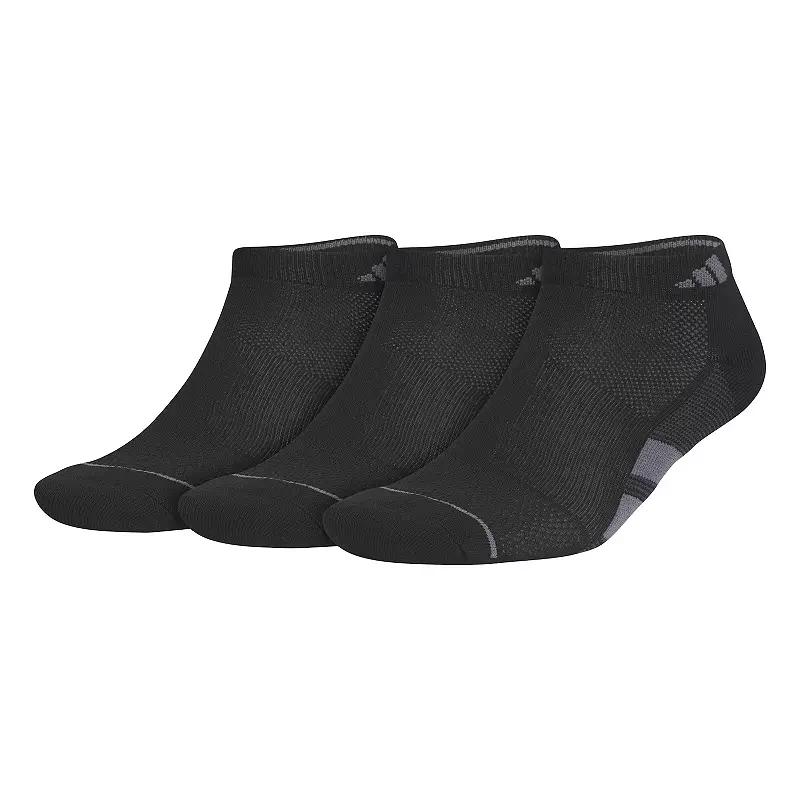Treat your feet to a snug, supportive fit with these men's adidas low-cut socks. Light and durable, they're great for everything from training and running to everyday wear. They have cushioned toes and heels, extra support through the arch, and mesh over the top for ventilation.Treat your feet to a snug, supportive fit with these men's adidas low-cut socks. Light and durable, they're great for everything from training and running to everyday wear. They have cushioned toes and heels, extra support through the arch, and mesh over the top for ventilation.FEATURES Includes 3 pairs of socks Mesh on top of the foot provides breathability Enhanced arch support for secure fit Targeted cushion zones in the heel and toe for added comfort and durability Lightweight yarns and durable construction for a close fitFIT & SIZING One size fits most Low-cut silhouetteFABRIC & CARE Polyester, cotton, spandex Machine wash Imported Size: 6-12. Color: Black Night Grey. Gender: male. Age Group: adult.